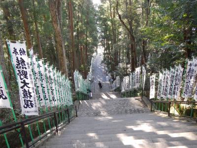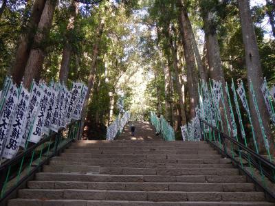 2014年12月14日 しめ縄はもう正月用になってました。朝9時参拝する人は少なかったです。参道の石段の両側にあるのぼりは、5000円奉納すれば、出す事が出来ます。