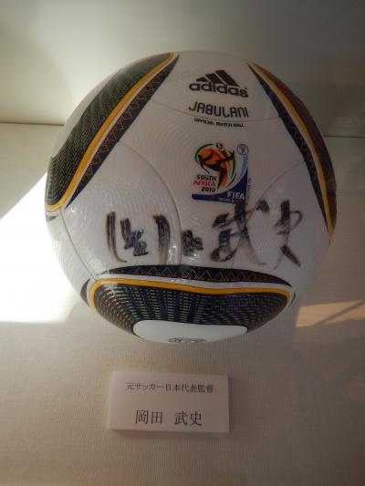 今まで何回か訪れてますが、気づきませんでした。なぜか、サッカーワールドカップのサイン入り公式球が展示されてました(写真参照 他の人のもありました)