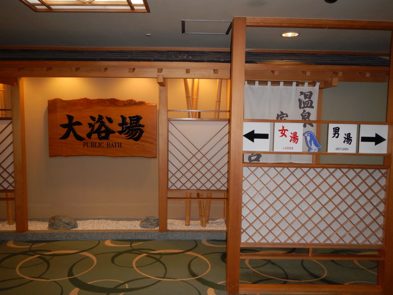 夜は宿泊客だけになり、暗いですので、はだかで入る風呂になりますが、配慮の無い見物の女性が風呂際に並んでたりするので、出るに出られない状態になることがありました。