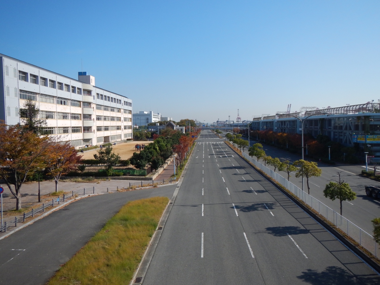 2014年11月 おしゃれな施設は衰退して普通の高層住宅の人口島ですが、少し行くと、人気の無い殺伐とした港湾風景が広がります