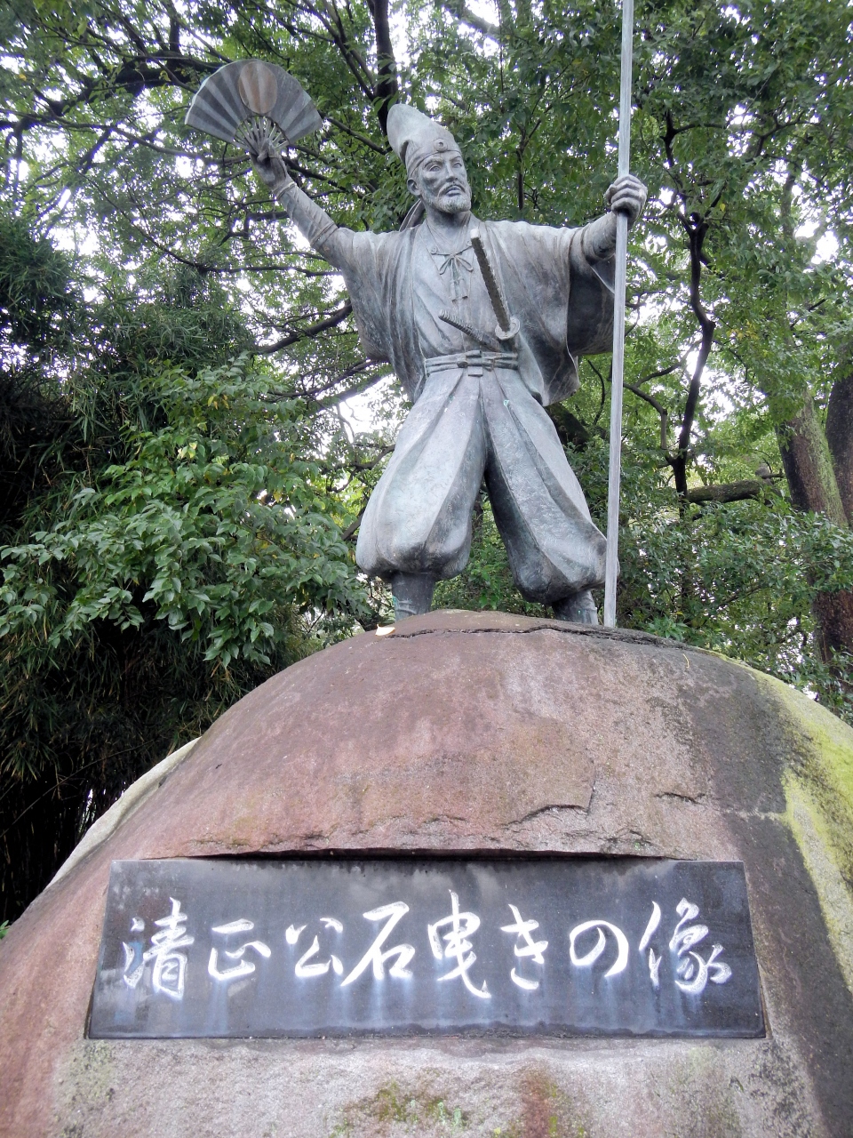 石の上に加藤清正が乗っているだけの像ですので、実際、巨石をどのようにして引っ張っていったかは、これを見てもわかりません。