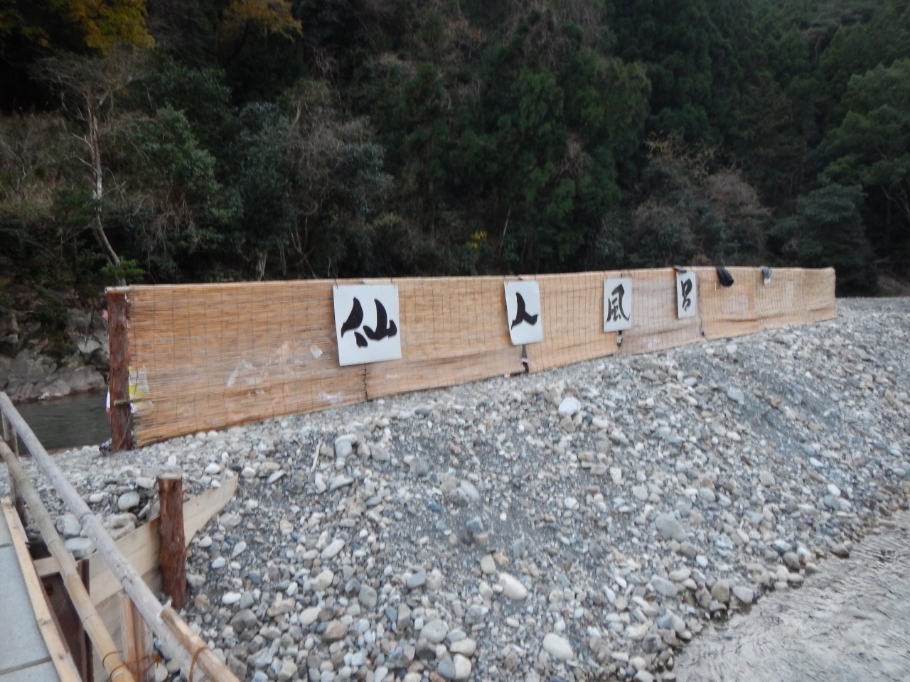 無料の脱衣室が道を隔てた反対側にあります。正しく利用するとすれば、そこで、服を脱いで裸になって、タオルで隠して、外に出て、道を横断して、河原を数10m歩いて、タオルを際において、風呂に入るということになります。あがる時は、その反対に行う、いずれにしても、男女とも、裸でタオルで隠しただけの状態で公道と河原を数10m歩くということになります。