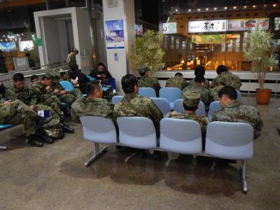 2014年10月末、待合室は、迷彩服の自衛隊員がいっぱい居て、異様な雰囲気でした。