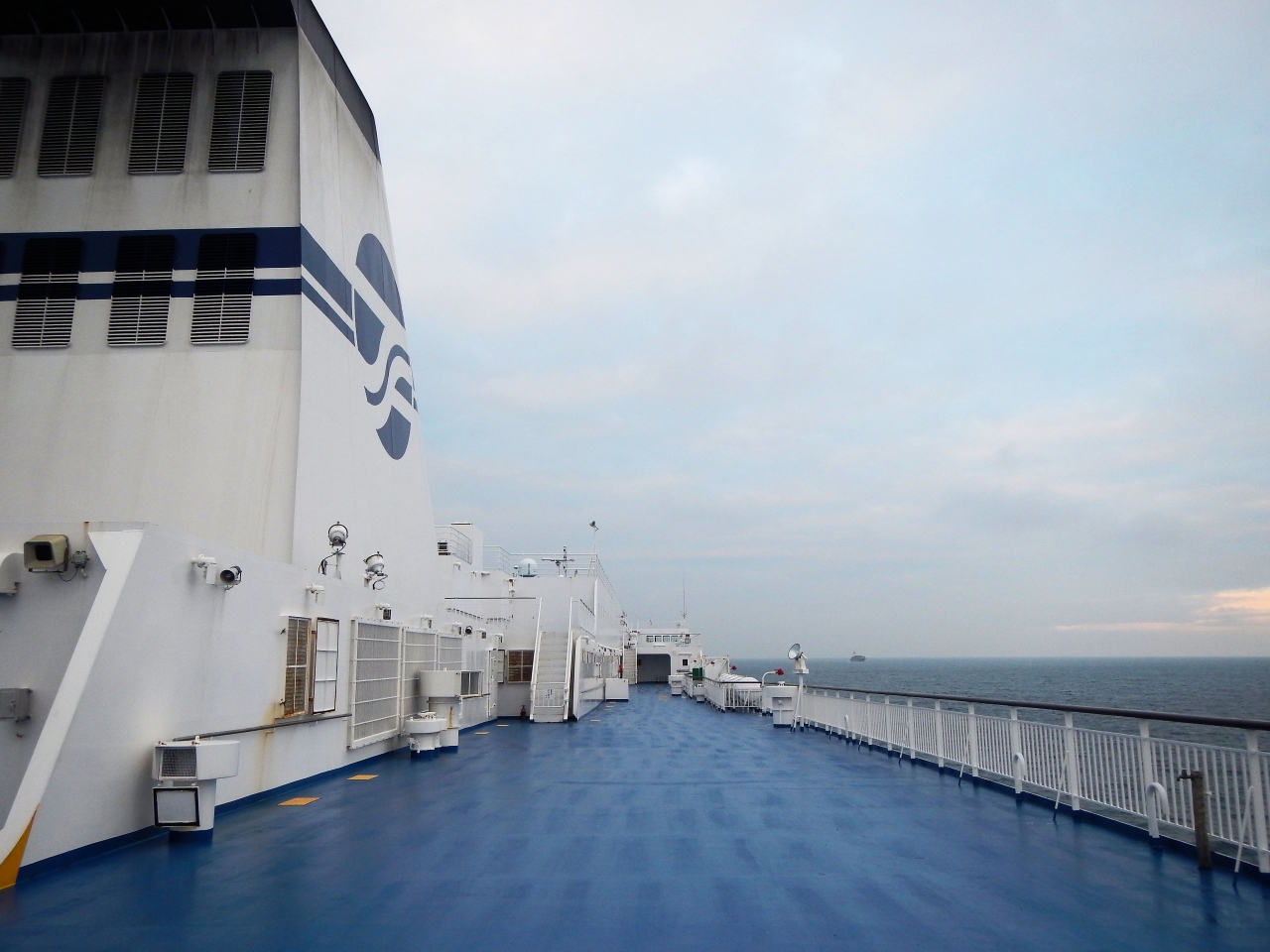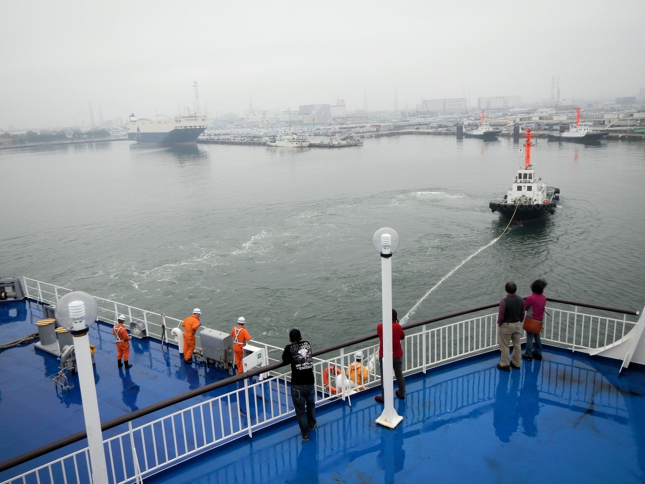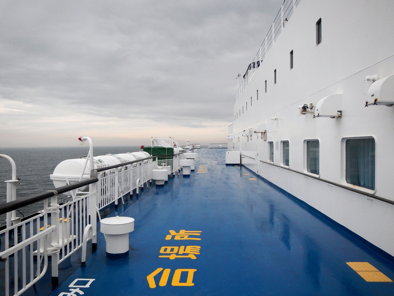 2014年9月、苫小牧−秋田−新潟−敦賀の経由便を予約しましたが、台風の影響で、新潟・敦賀間は欠航となり、苫小牧−新潟間を乗りました。相変わらず、所構わず喫煙して、ポイ捨てする客がいます。デッキのジャグジーは9月以降は閉鎖されていました。秋田沖の飛島、新潟沖の粟島が見えます。船内放送もありました。また、海上から鳥海山も見ることが出来ました。ビンゴ大会・コンサート等の船内イベントもありました。この時期は追加料金無しで、1等船室の貸し切りが出来ました。
