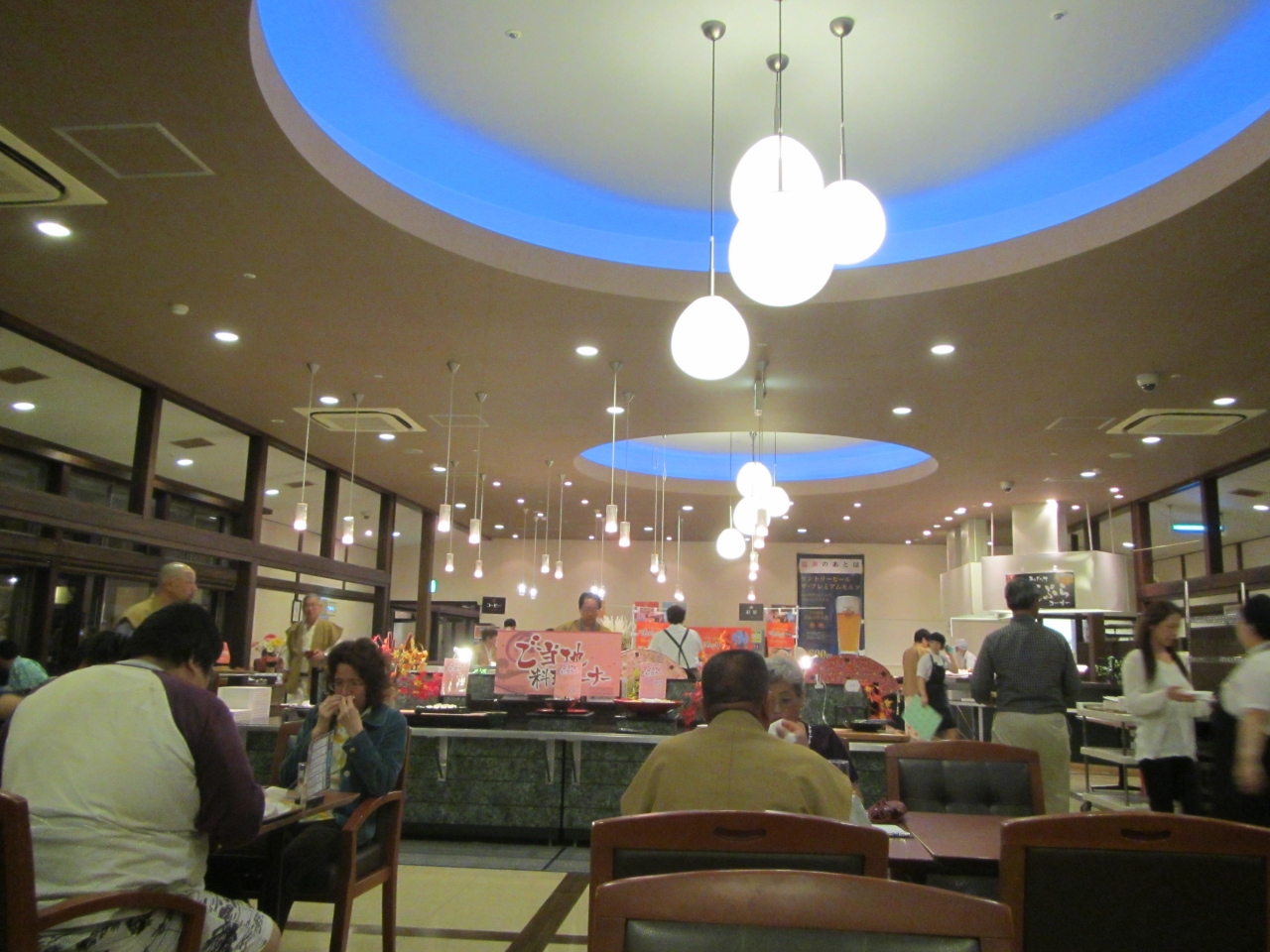 バイキングですが、季節に合わせて、食事が変わるのがうれしいです。2014年10月4回目です。2週続けて週末に台風が来た後でしたので混んでました。ビジネスルームです。テレビはヘッドホンで聴くルールとなってますが、隣が、ヘッドホンを付けずに、テレビを見ているので、うるさかったです。しかも、テレビを付けたまま寝てしまったようで、1晩中、騒音でろくに寝れませんでした。たまには、こういう、非常識な客もいます。