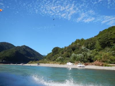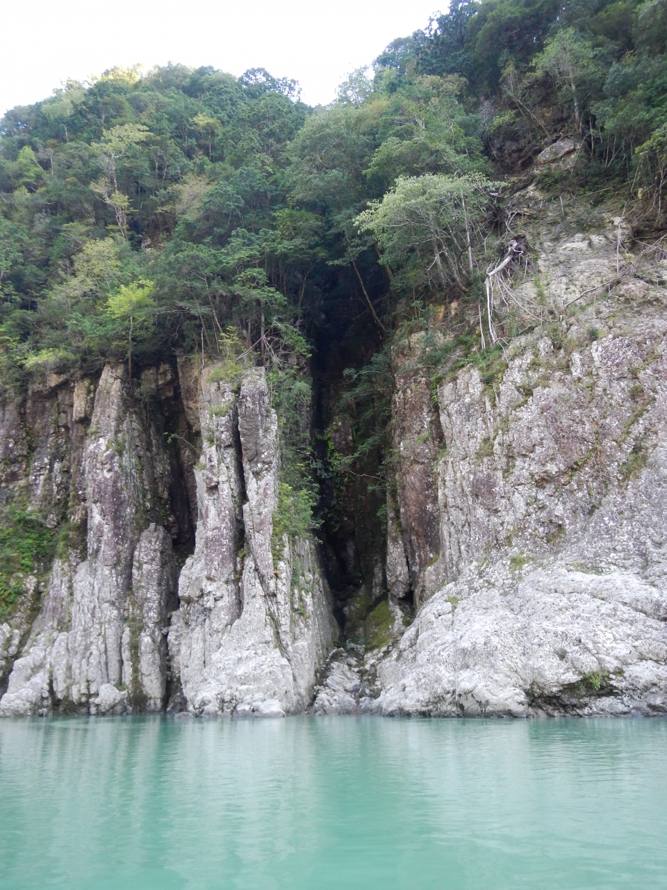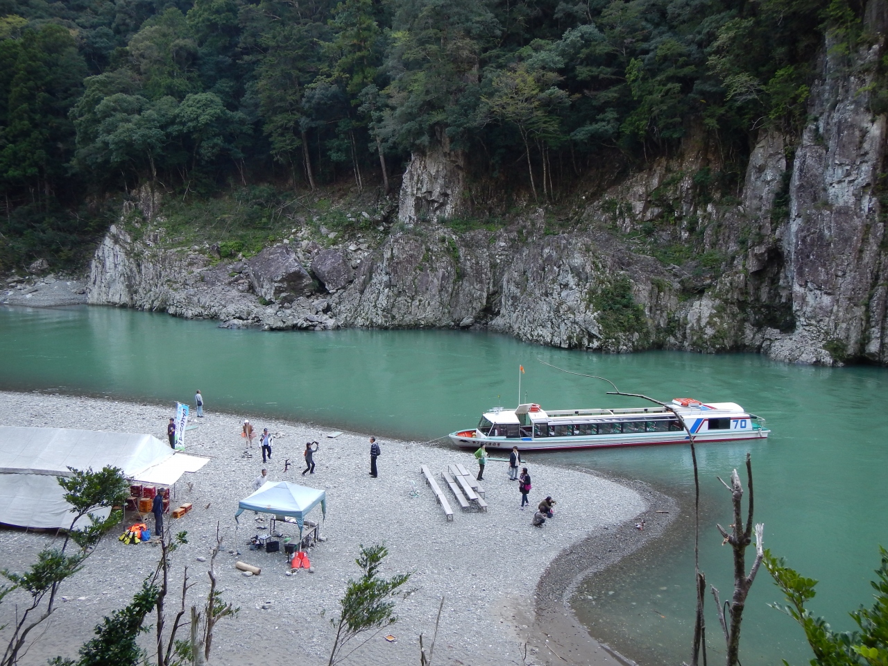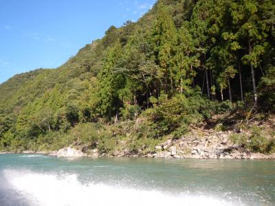 基本は、志古からウォータージェット船に乗っての観光です。乗船後、瀞八丁まで50分くらいかかります。船の天井が開いて、眺めることができます。休憩地点では15分くらいしか時間がありませんが、瀞ホテルの方に登って行くと、瀞八丁の絶景を見ることが出来ます(写真を参照してください)