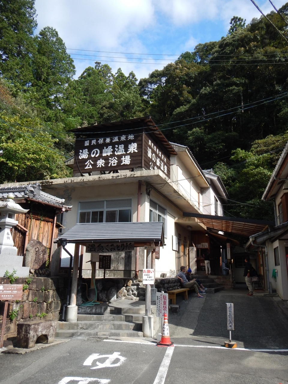2014年10月、熊野古道大日越を歩いて、ここに行きました。ここまで来ると、着いたという感じがします。静かなところです。初めてここで人に会いました。場所がわかりにくいこともあって、温泉目当ての観光客は、全く来ません。ここから温泉街を見下ろすことが出来ます。