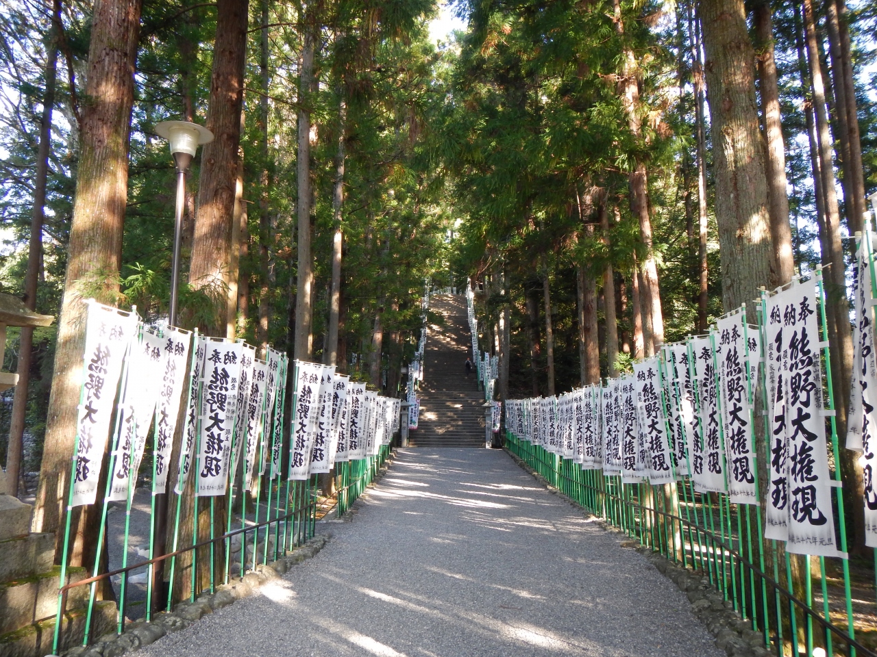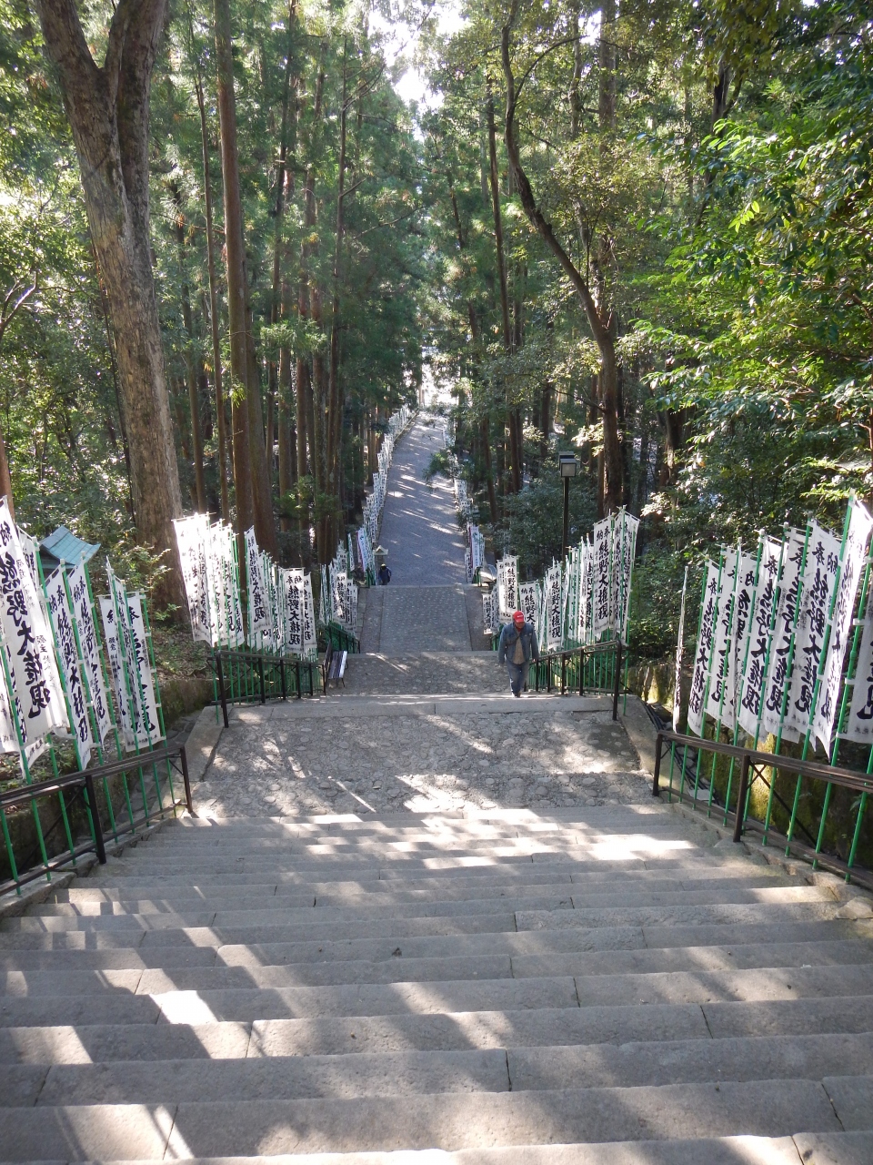 参道は右端を登り、左端を下るのが作法です。(中央、正中は神様の通る路)