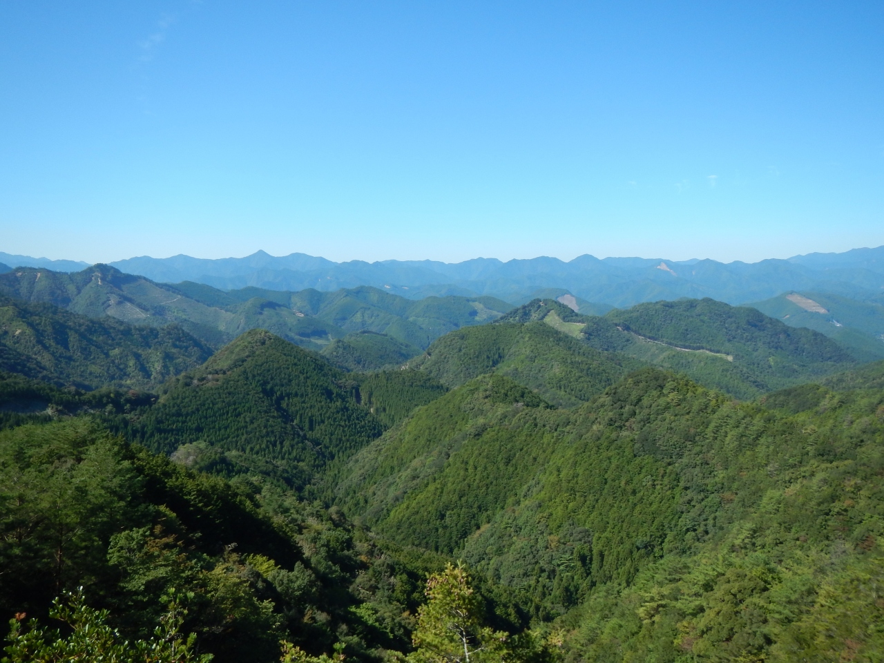 熊野古道 中辺路 小雲取越の絶景ポイントです。小口方面・請川方面両方とも、ちょうど中間地点という感じです。かつ、最高地点ですので、休憩するのにはよいでしょう。ただ、広い山の頂上ではありません。