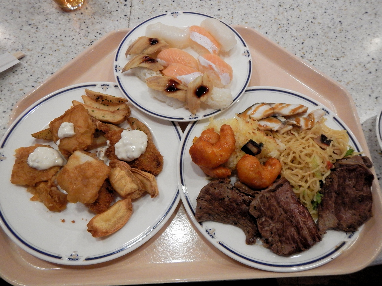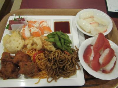 レストラン夕食は税込み2000円です。ステーキやお寿司もありました。