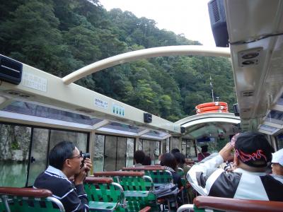 2014年10月HP割引があります。3440円が3100円になります。瀞ホテルのある田戸発着場で一旦下船します。トイレがあります。ここから上流については、台風の影響と言う事で、吊り橋を越えたところでUターンし、上瀞には、行けませんでした。席は狭いです。カーブでは、窓を開けていると、水しぶきがかかります。- 旅行時期