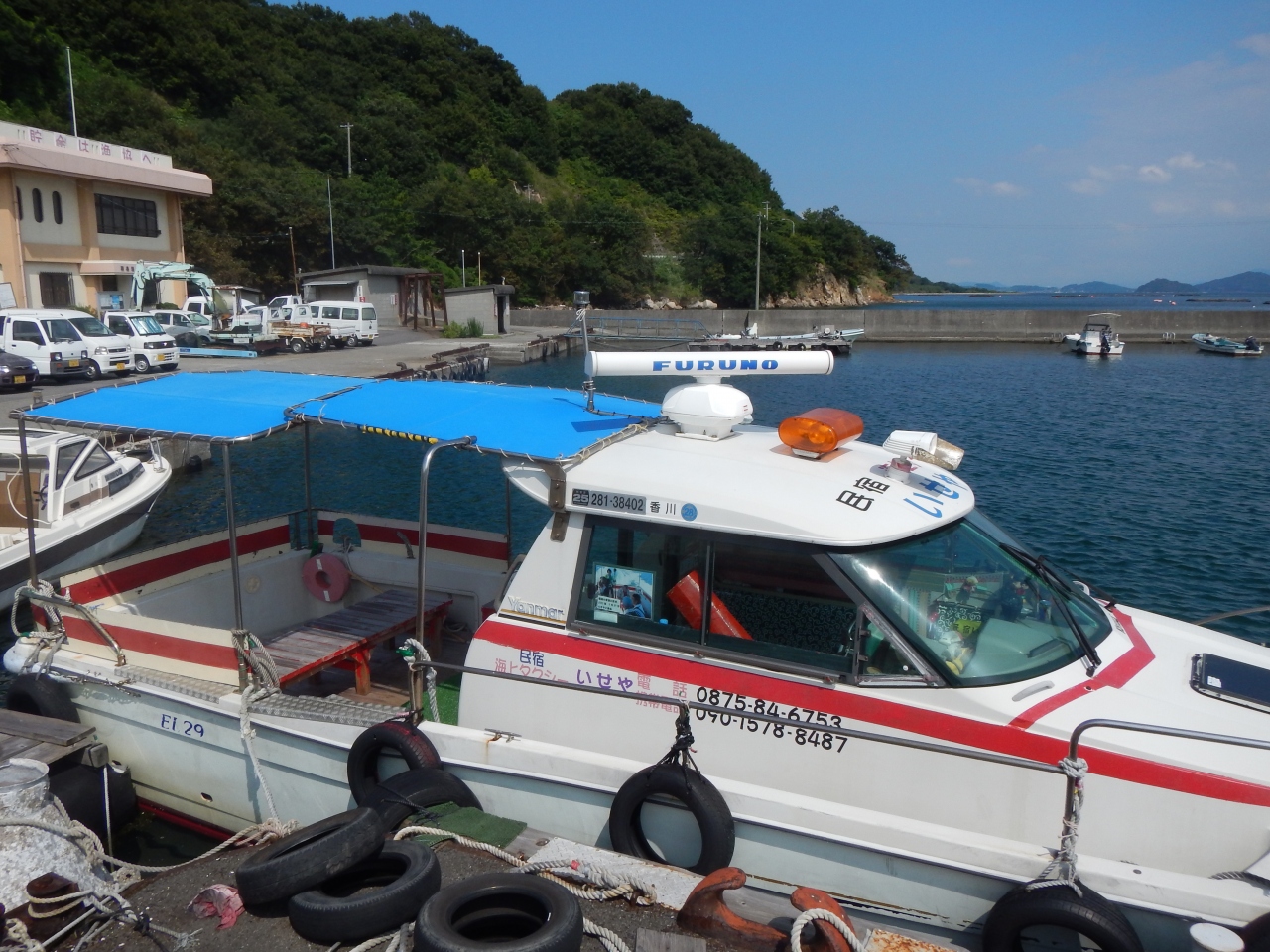詫間の駅から歩いても行けます。バス停からは徒歩1分。宮の下の港も徒歩2分