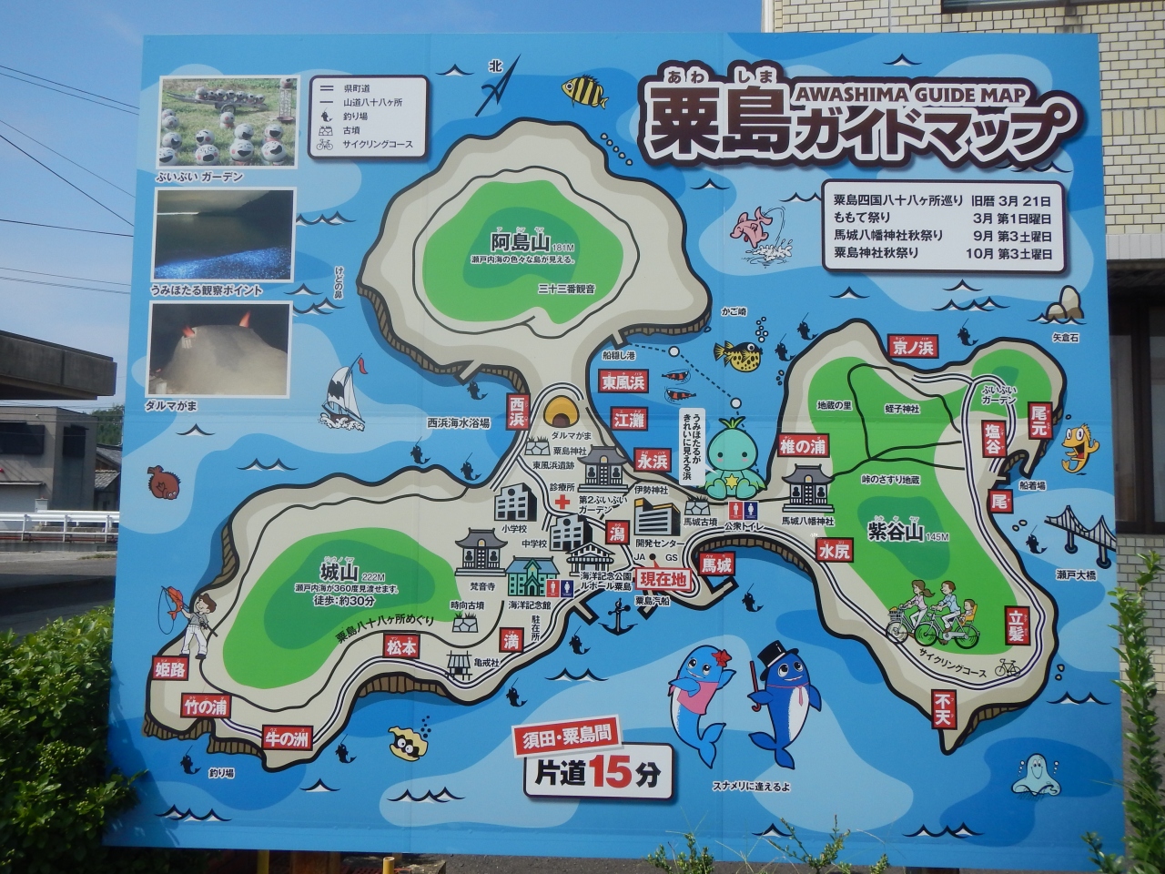 観光メニューは海ほたる・粟島海員学校跡=粟島海洋記念公園・ぶいぶいガーデン・城山展望台・海水浴場・島八十八箇所巡りといったところです。
