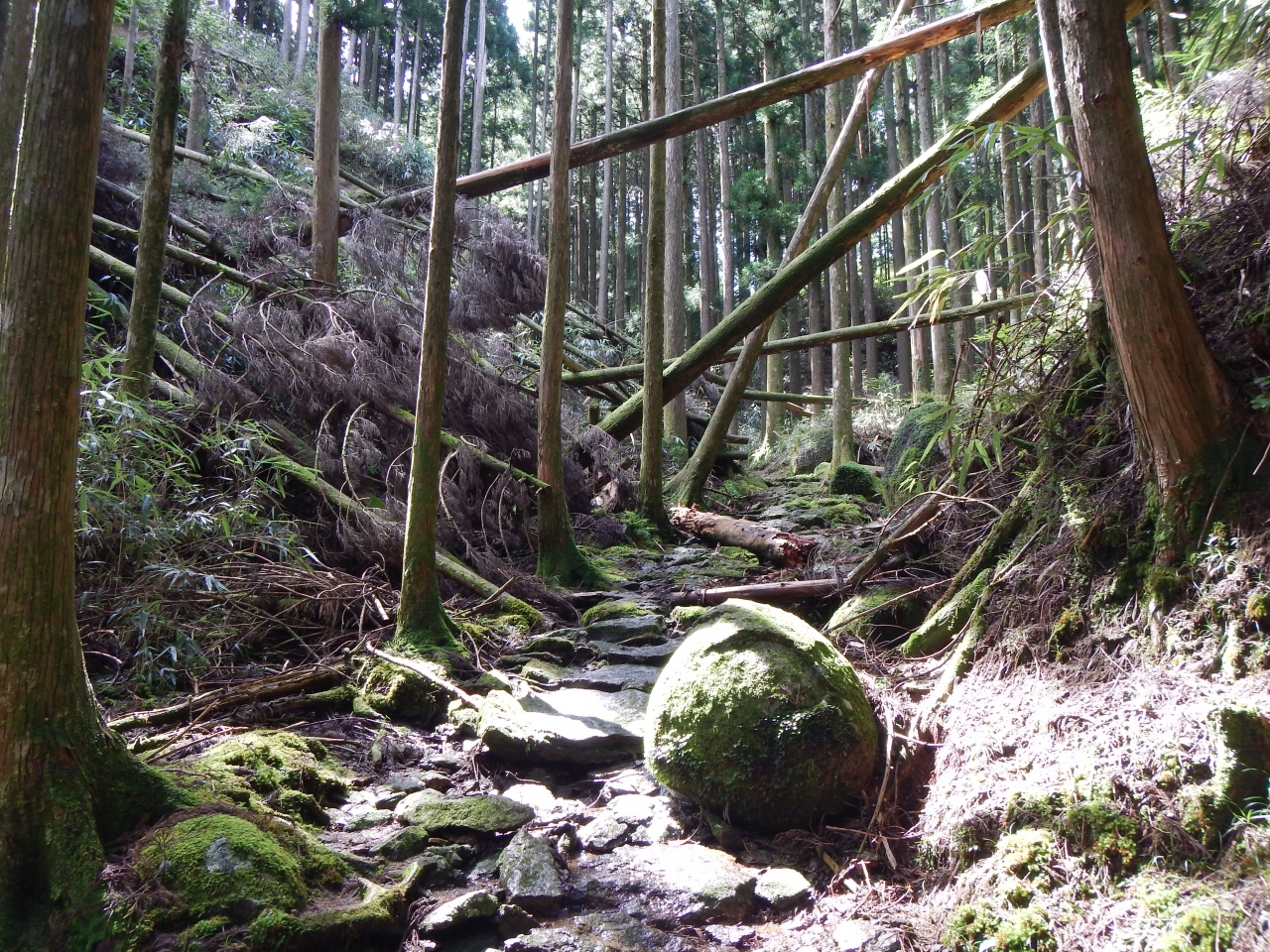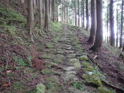 ただ、雨が降った翌日でしたので、苔むした石畳の段々が滑りやすく、特に下りは、つかまりながら1歩1歩という状態でした。