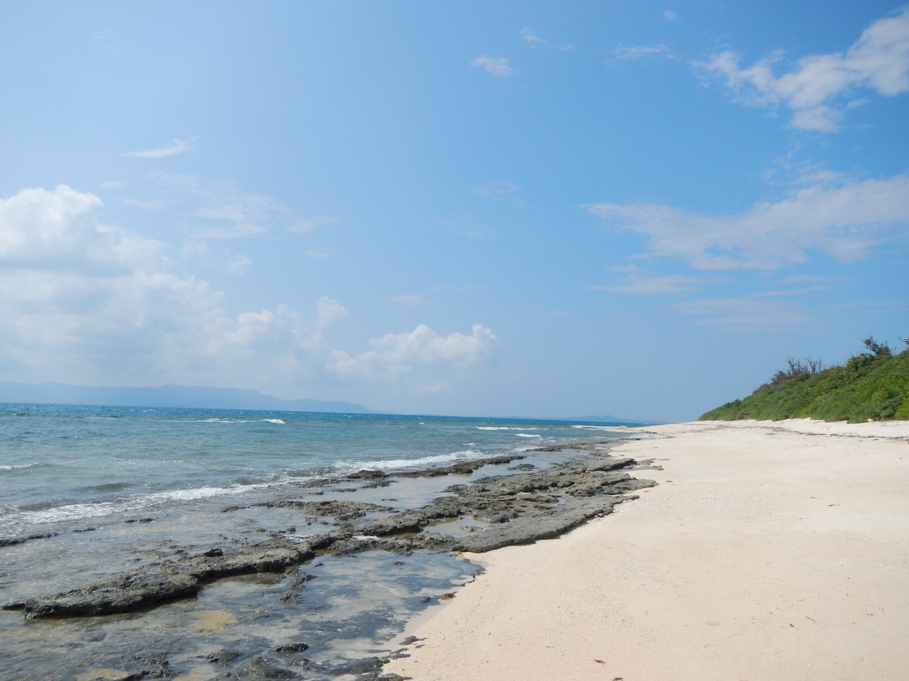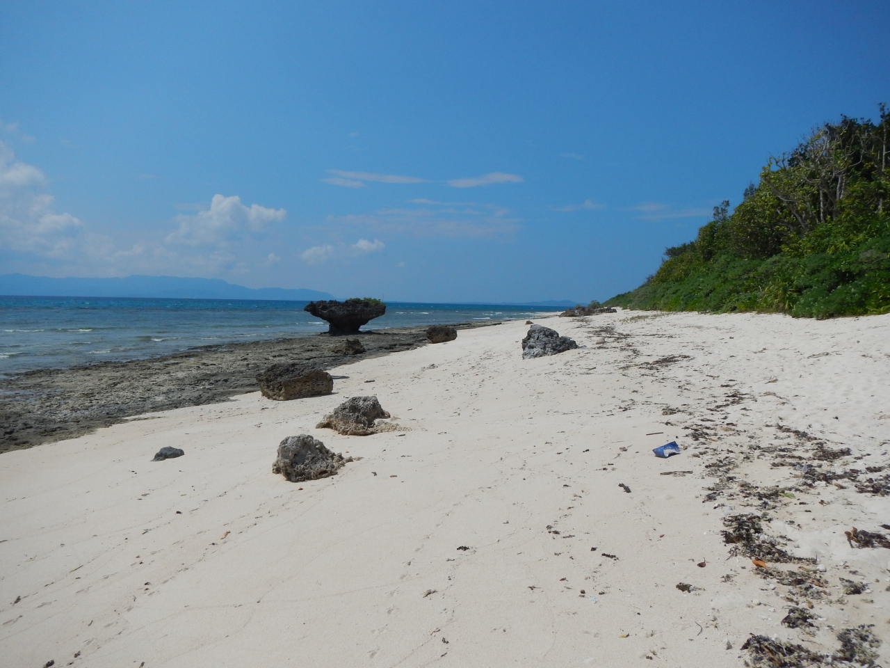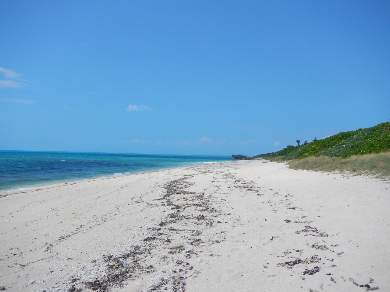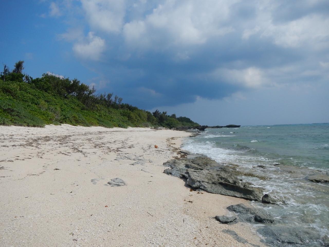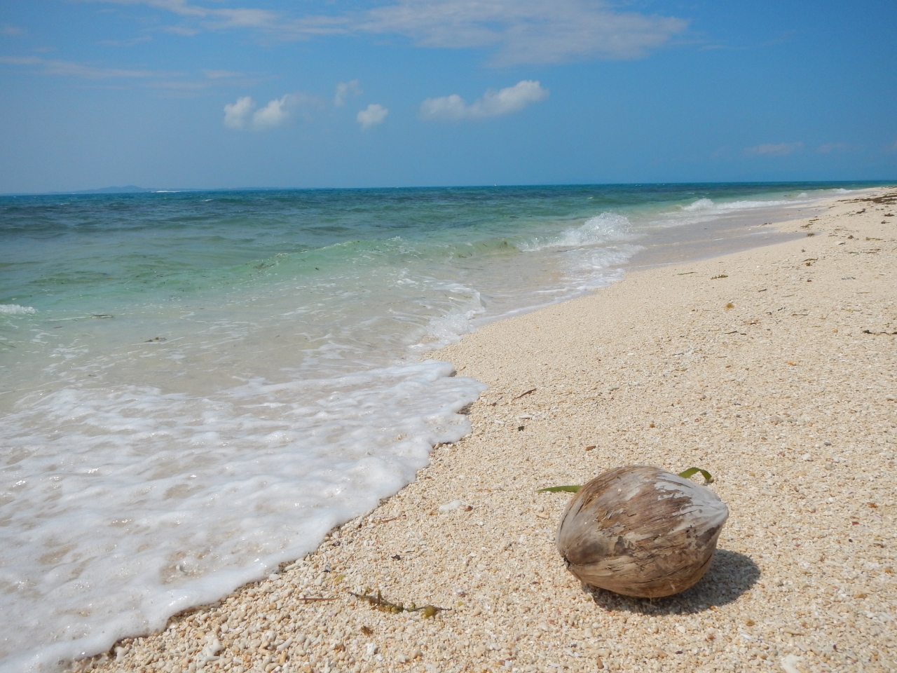 2014年8月 湾曲した長い長い砂浜 椰子の実も流れ着きます