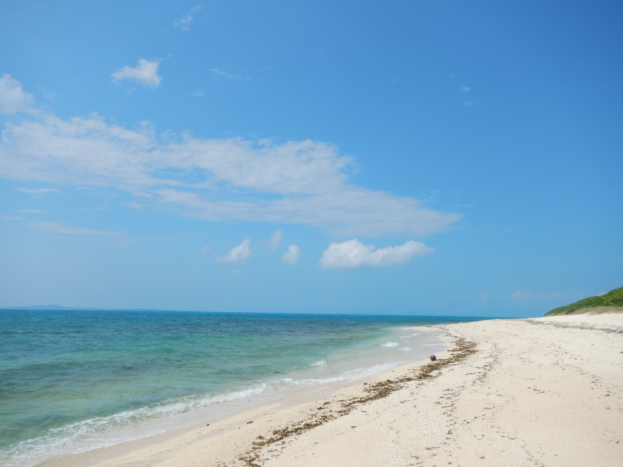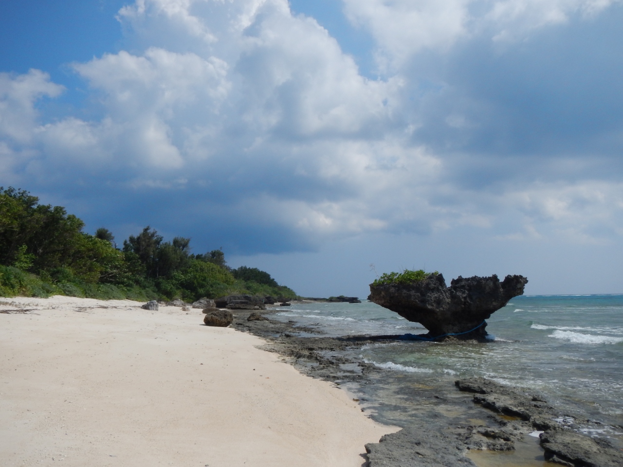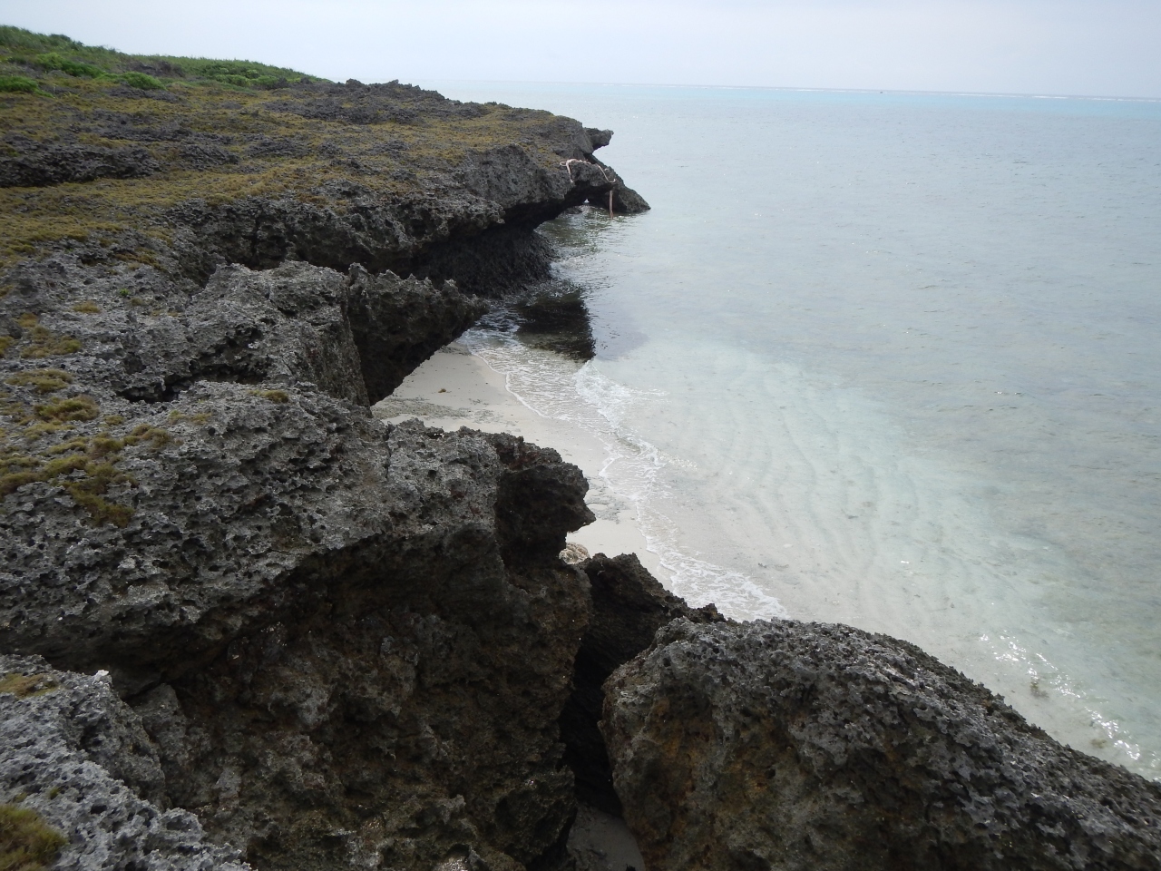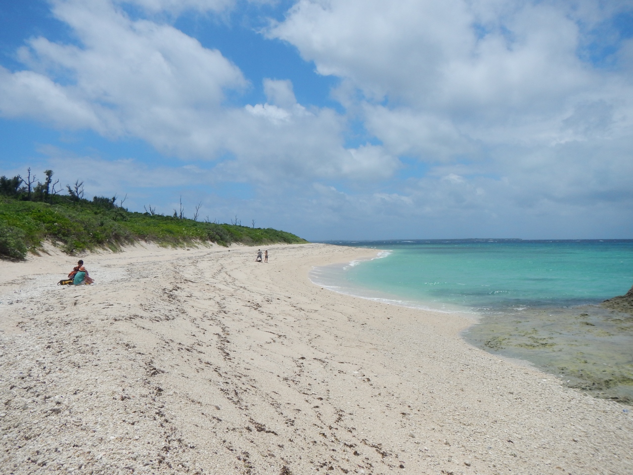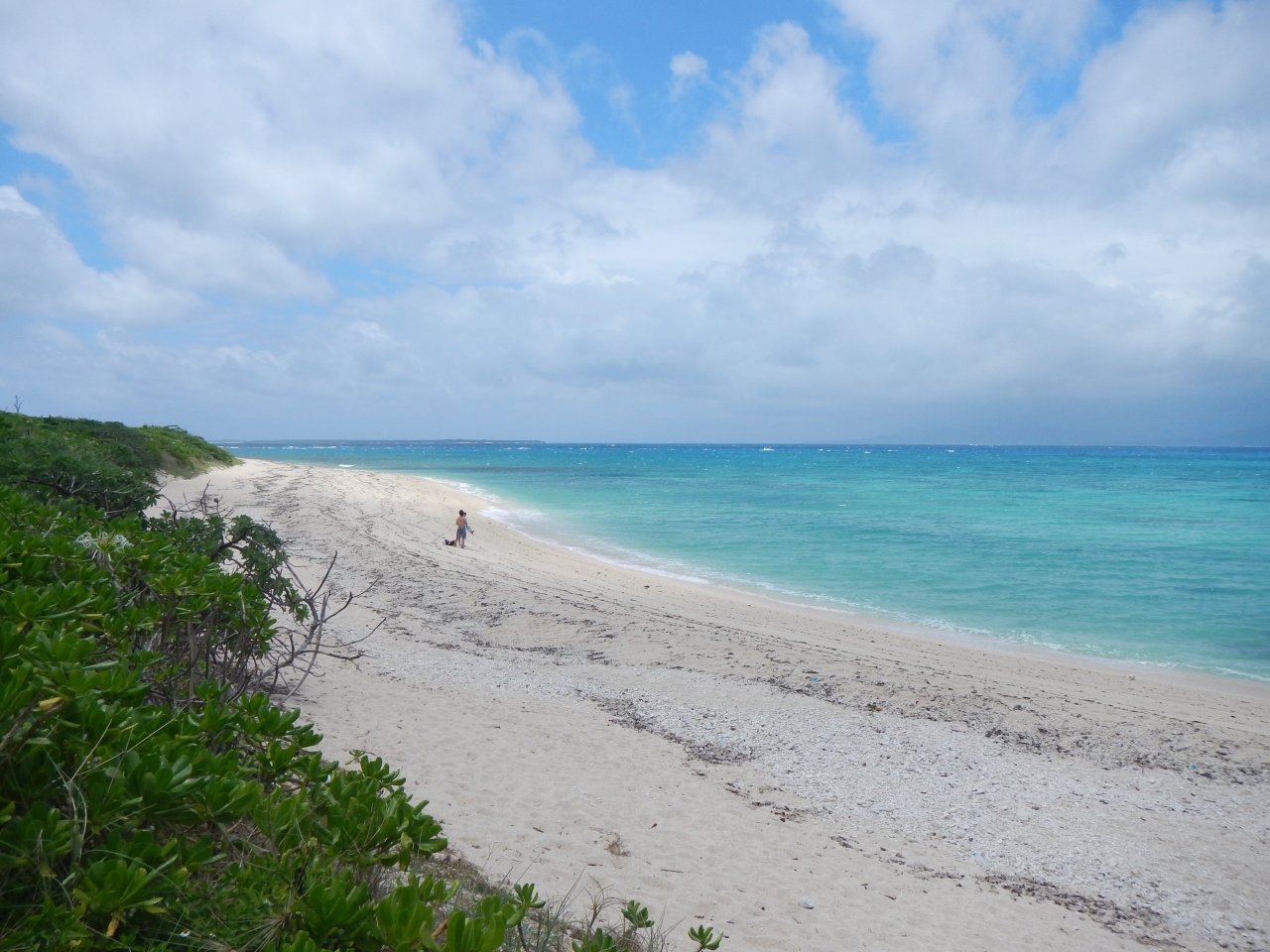 2014年8月 湾曲した長い長い砂浜 椰子の実も流れ着きます