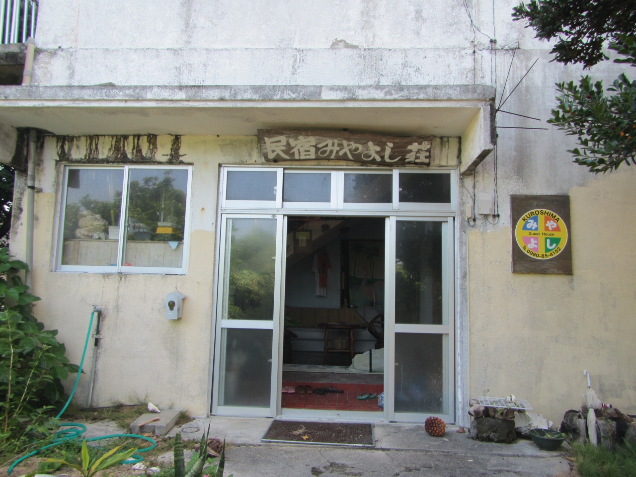 島のお盆の送りの獅子舞はここの庭で行われます。2014年8月11日その日に泊まりました。当然ですが、他の観光客と違って、ここの宿泊客は特等席でみることが出来ました。1泊2食付き5000円税込み。基本相部屋無し。自転車利用無料ですが、島の塩分とがたがた道で、自転車のメンテナンスが追いつかないことがあります。港と宿の送迎あり。事前連絡要。ステンレス浴槽の風呂は2つあります。