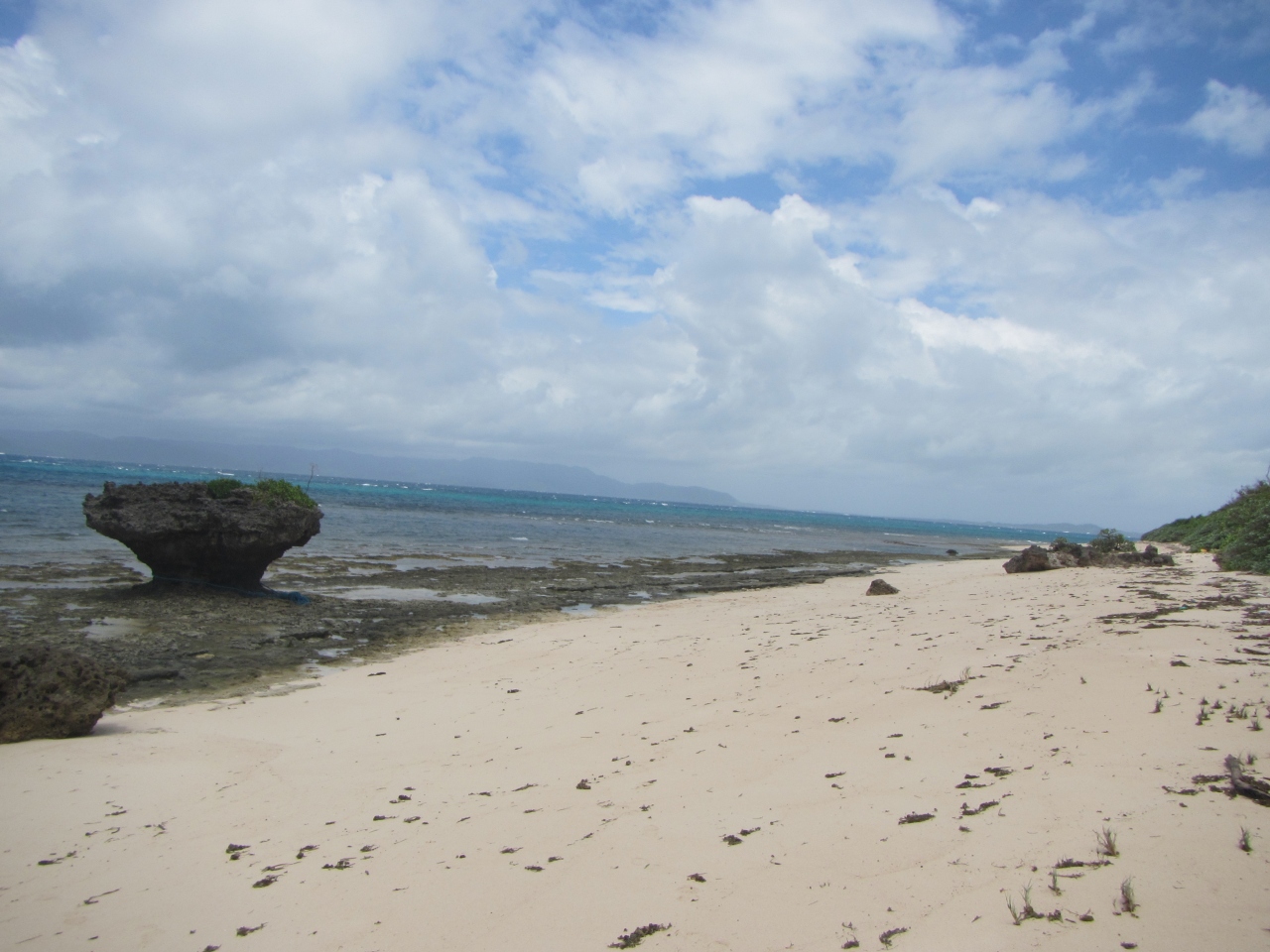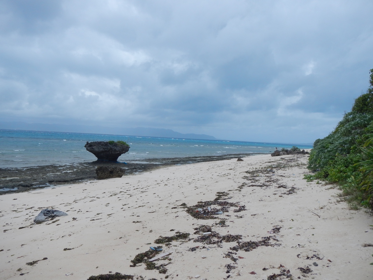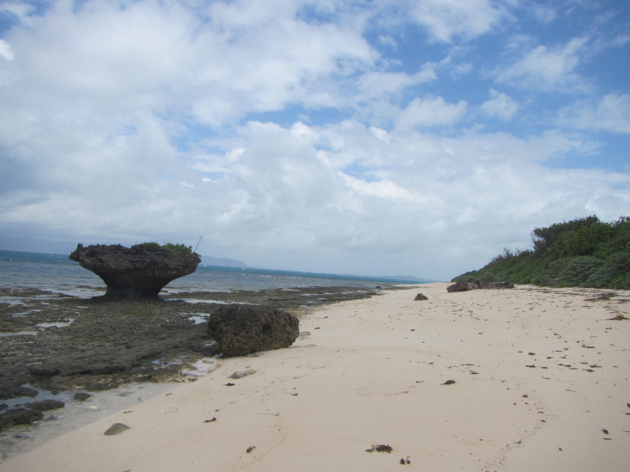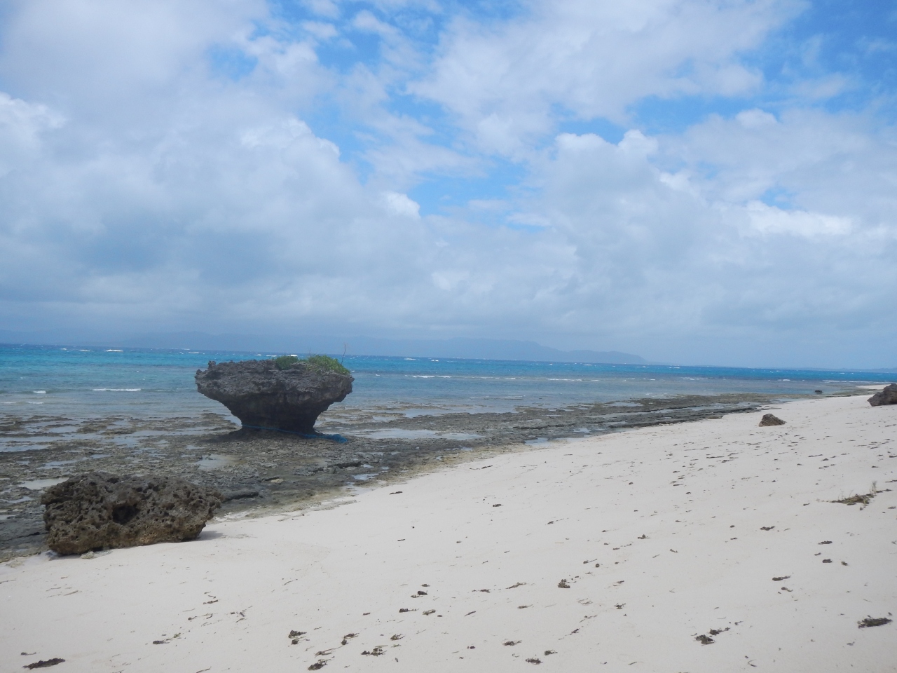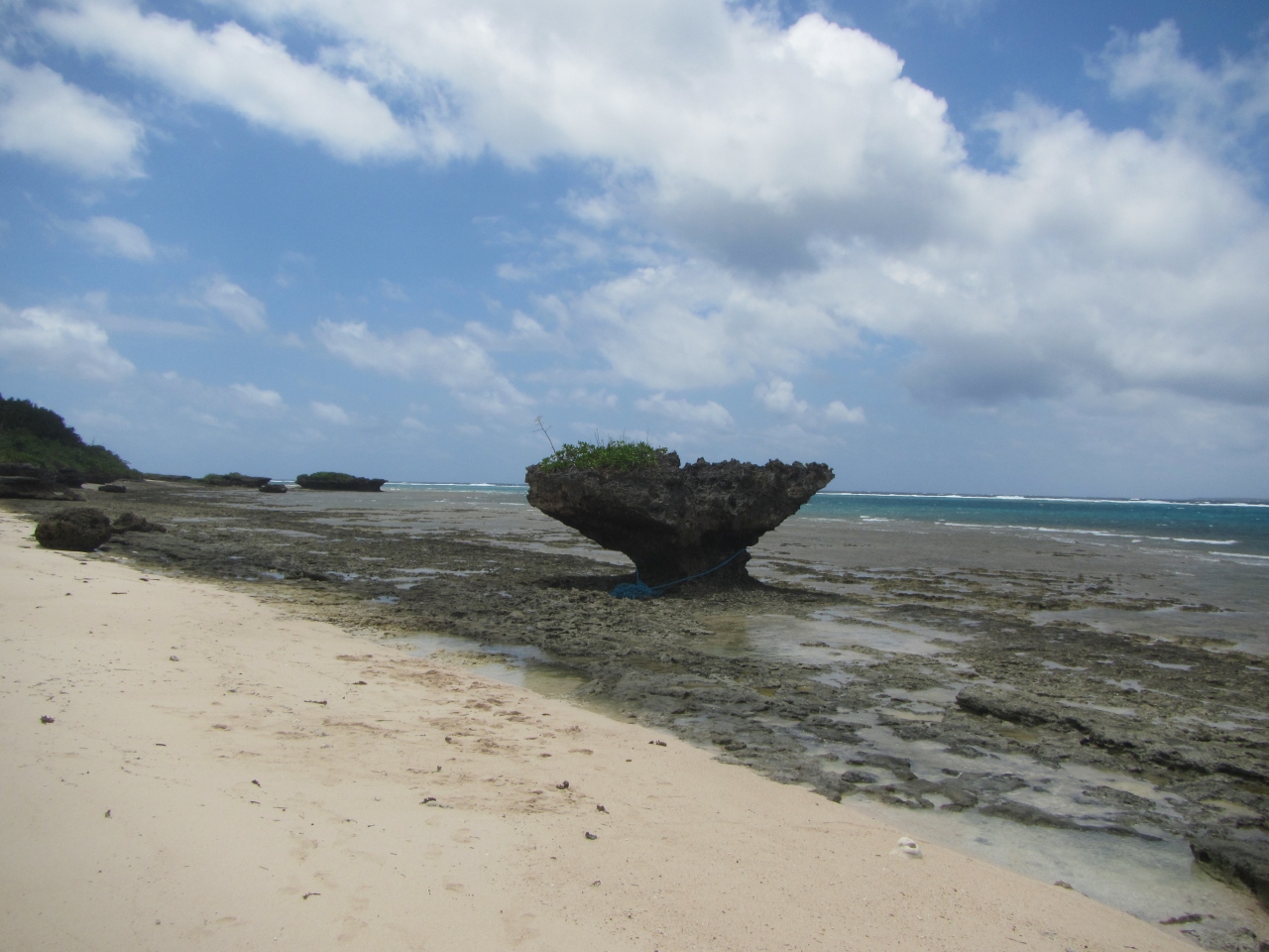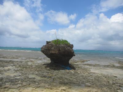 黒島のノッチ・きのこ岩です 看板が設置されている公式の場所は、黒島研究所から西の浜方面に行ったところにある保慶海岸です