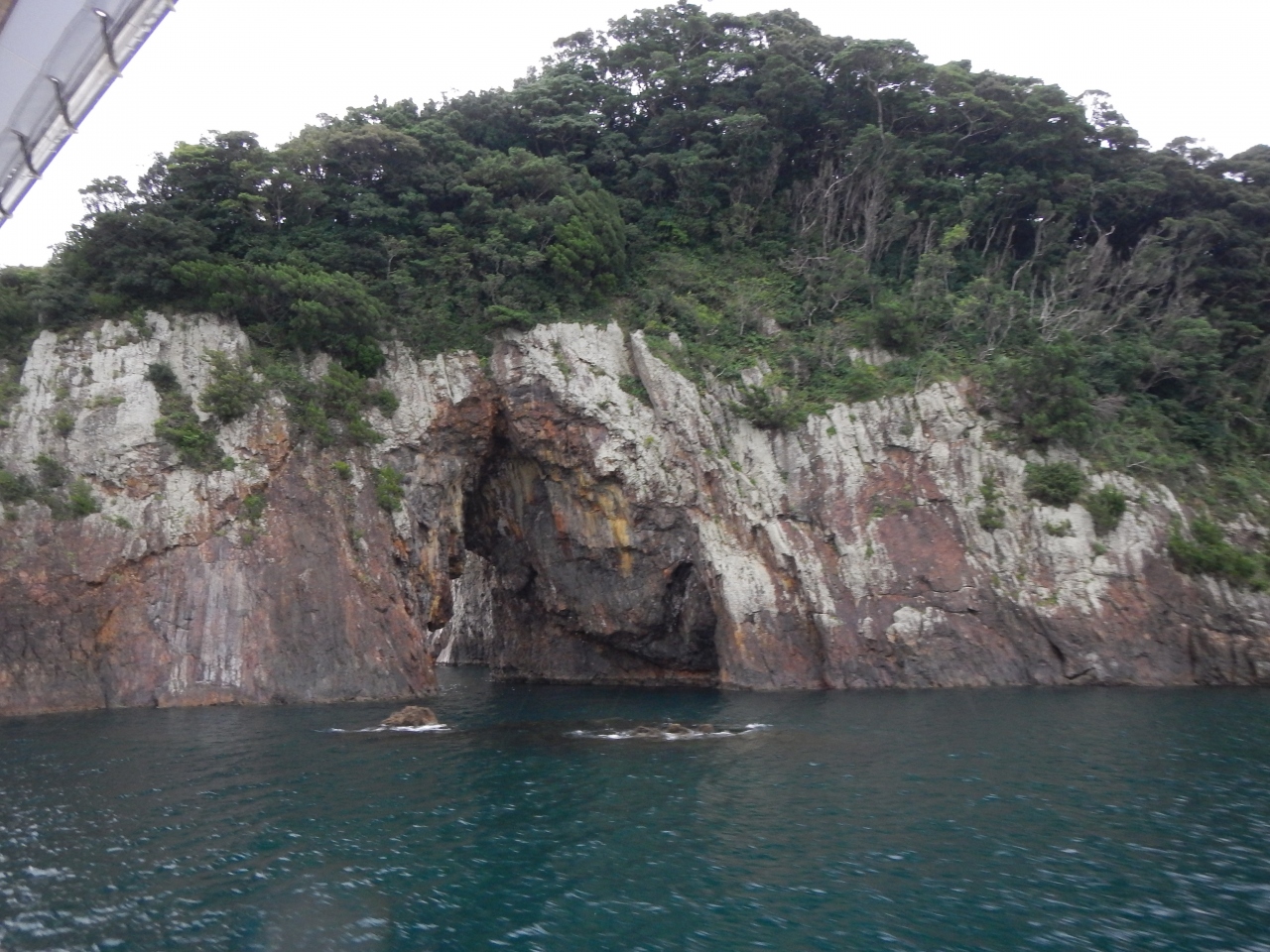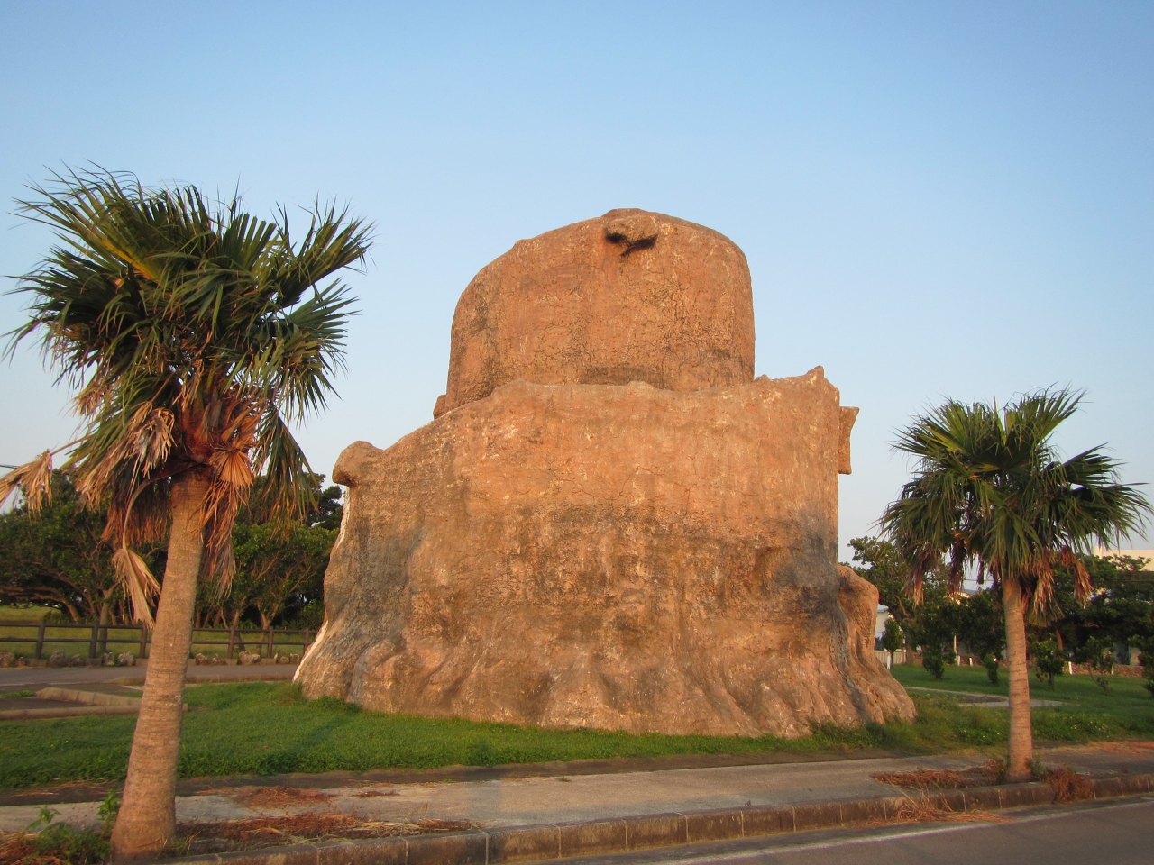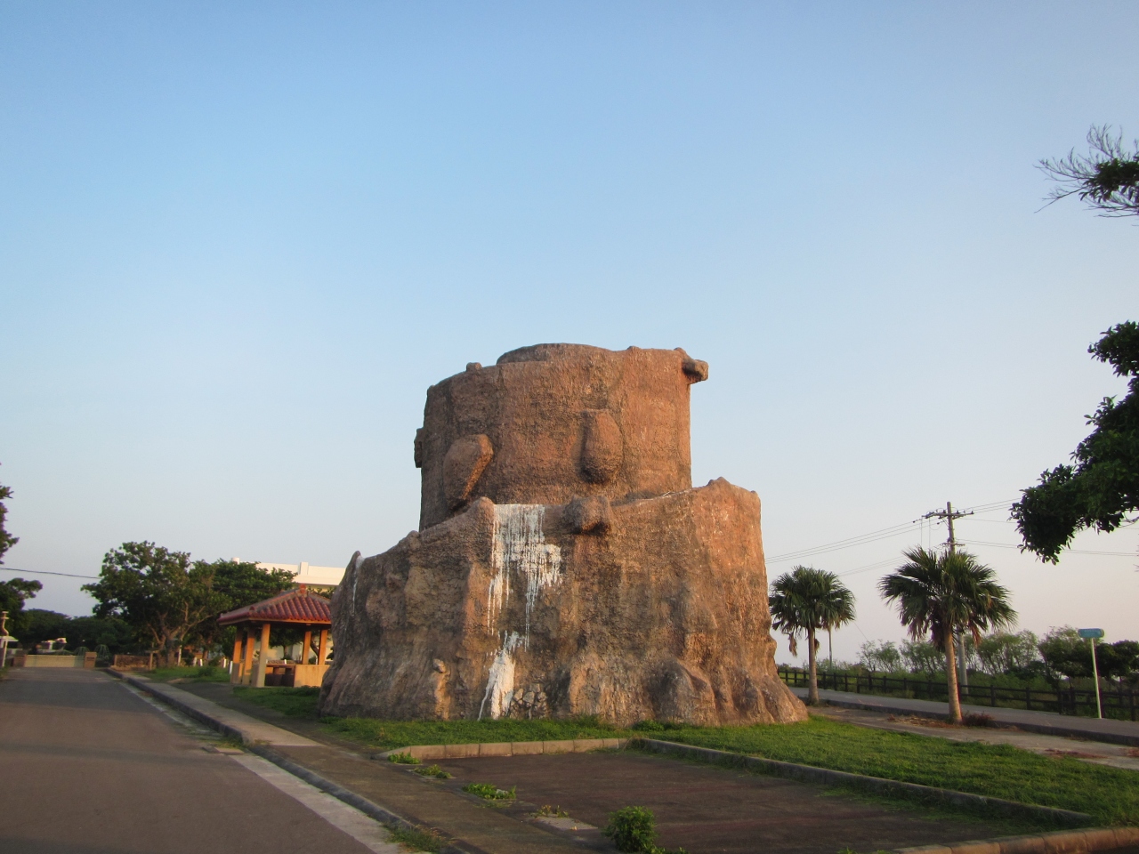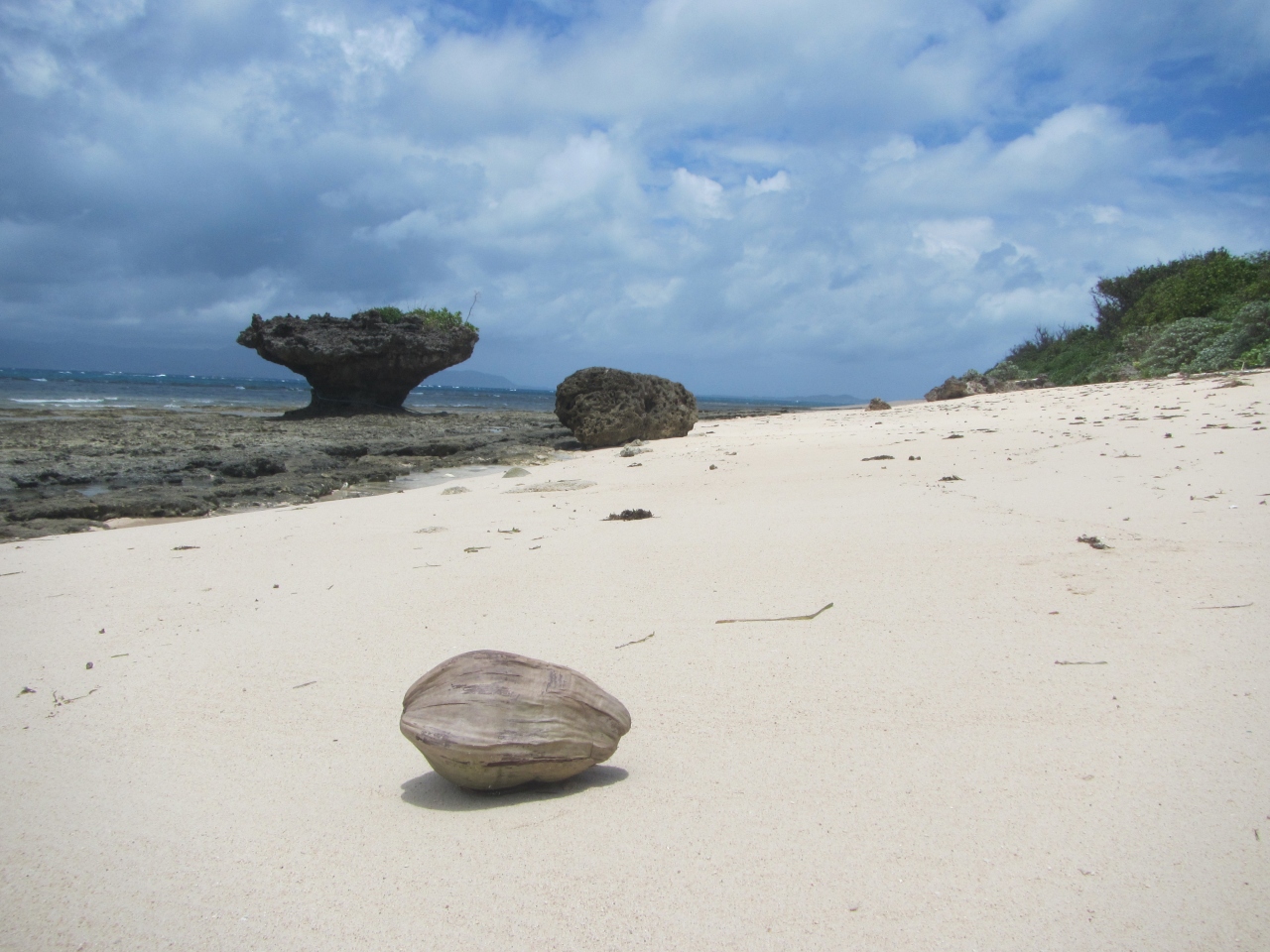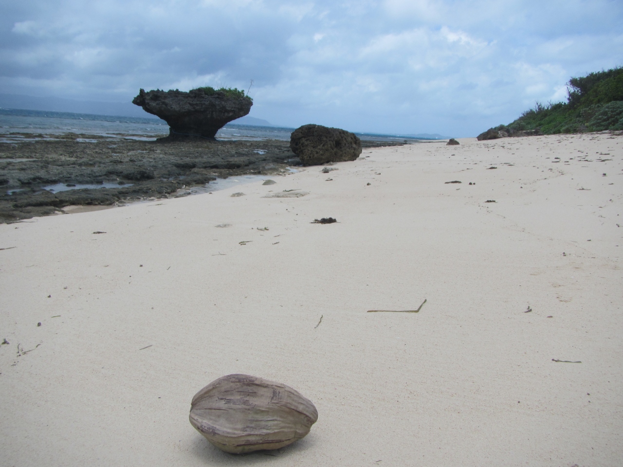 黒島のノッチ・きのこ岩です 看板が設置されている公式の場所は、黒島研究所から西の浜方面に行ったところにある保慶海岸です