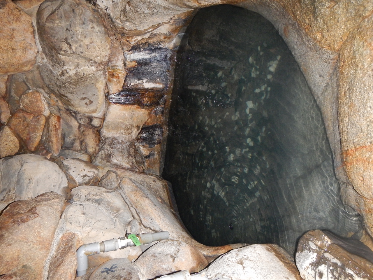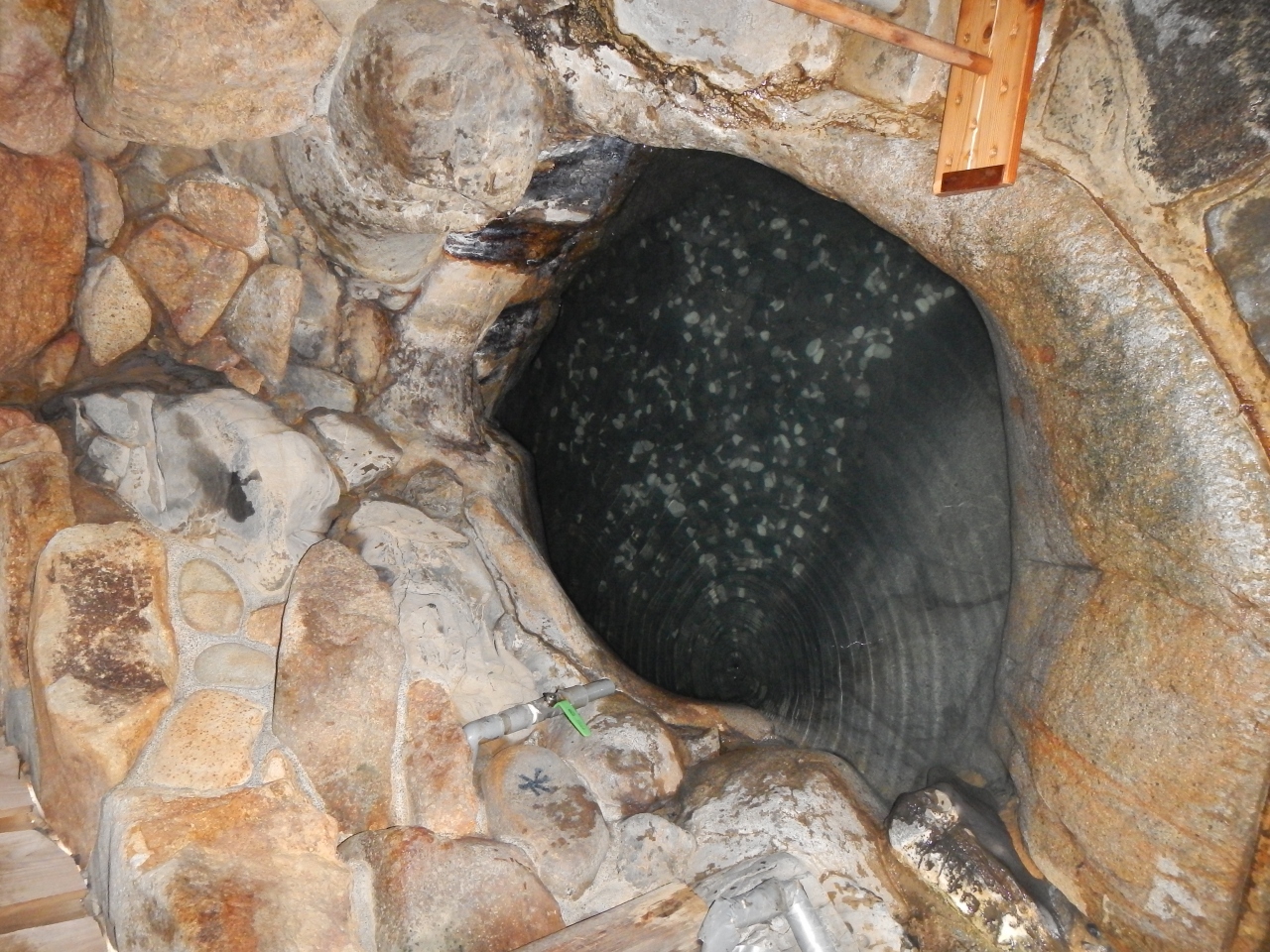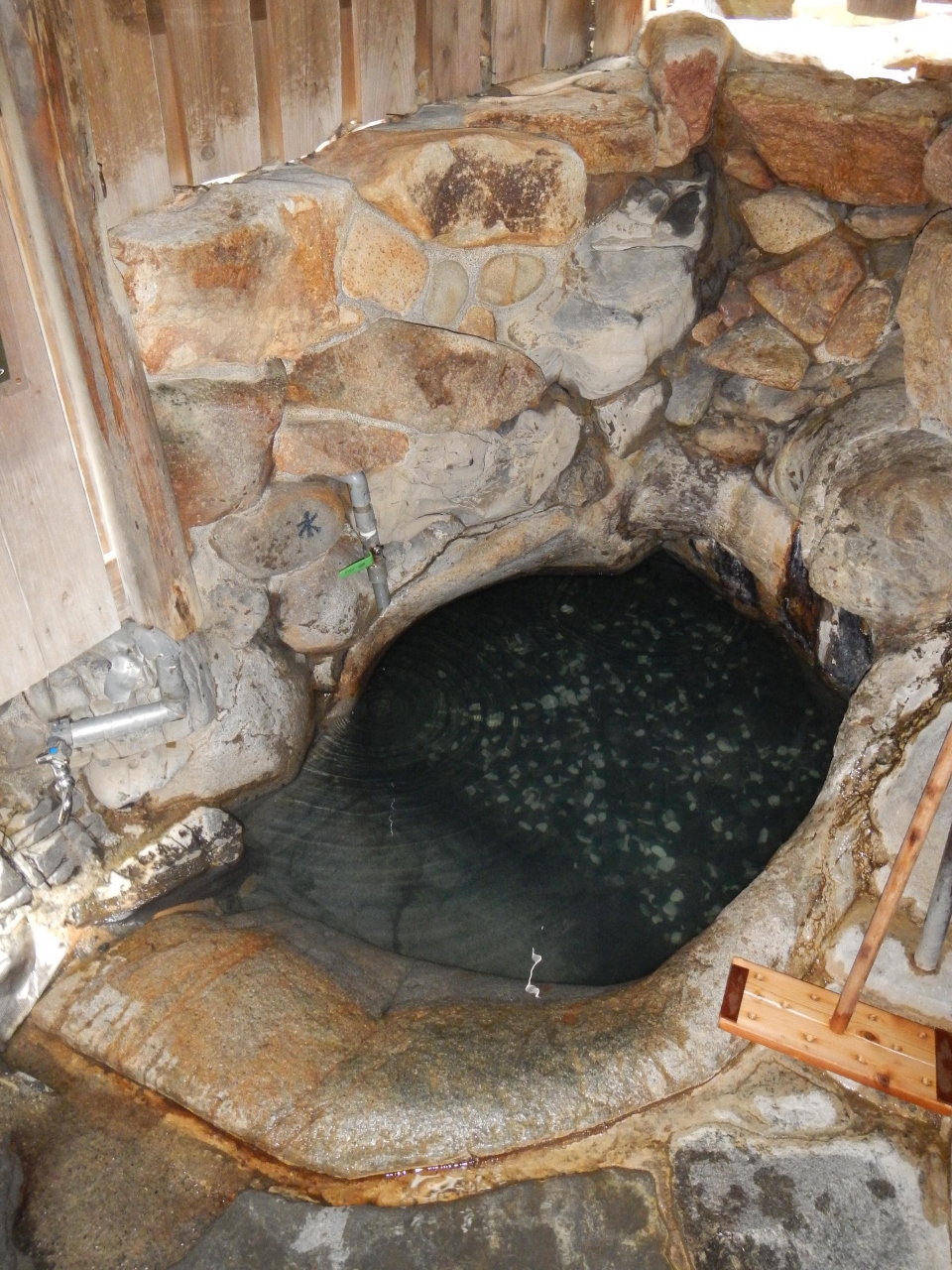 前の3回は青白く濁ったお湯でしたが、今回はきれいな透明の湯でした。