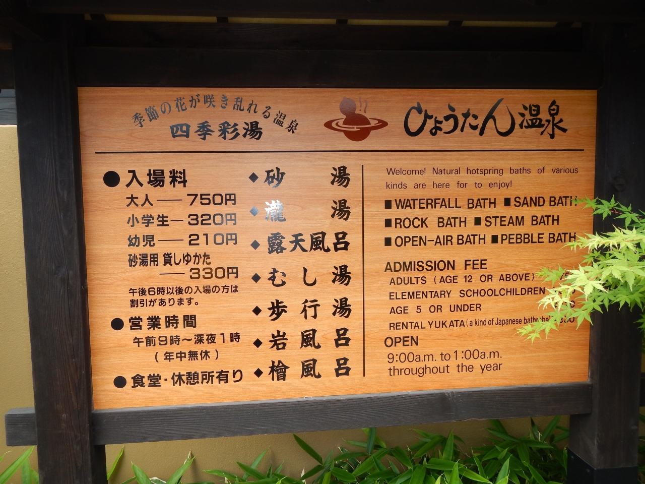 2014年6月入湯料750円砂湯は+330円。土曜の午後、比較的空いてました。砂湯は自分で砂をかけます。これは結構大変です。時間制限がないのは良いのですが、砂湯の利用は1回だけです。つまり砂湯用の浴衣が330円で、出るときには、砂まみれの浴衣を返却しますので,再度砂湯を利用するとなると、また、330円かかります。亀の井バスの1日乗車券を利用しましたが、ここの割引券がついてました。露天風呂は結構広くて気持ち良かったです。滝湯は数も多いし水量もあり、効くという感じでした。無料休憩所ではWiFiできました。