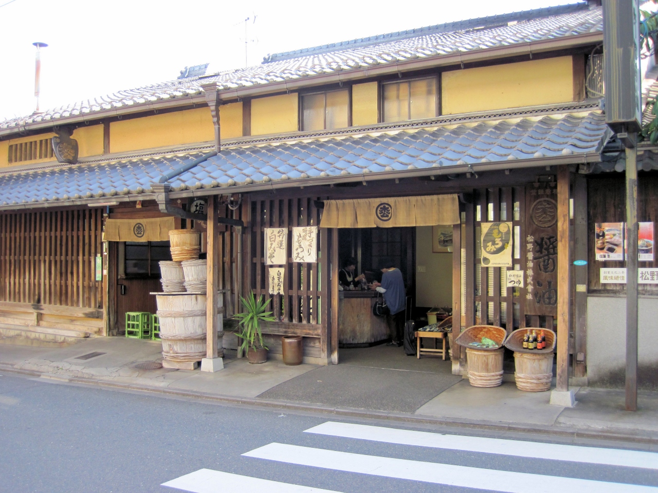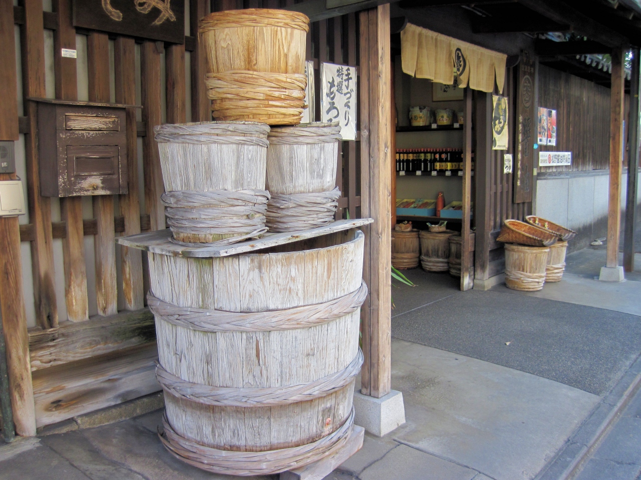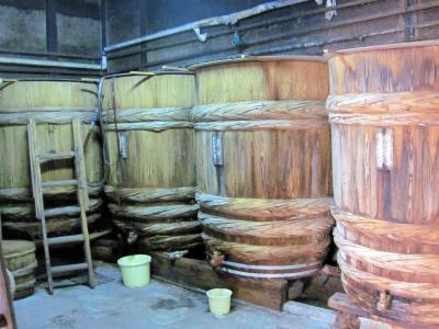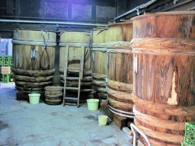 昔ながらの大きな木の樽が並ぶ様子は壮観です。店の中はお醤油の薫りが良いです