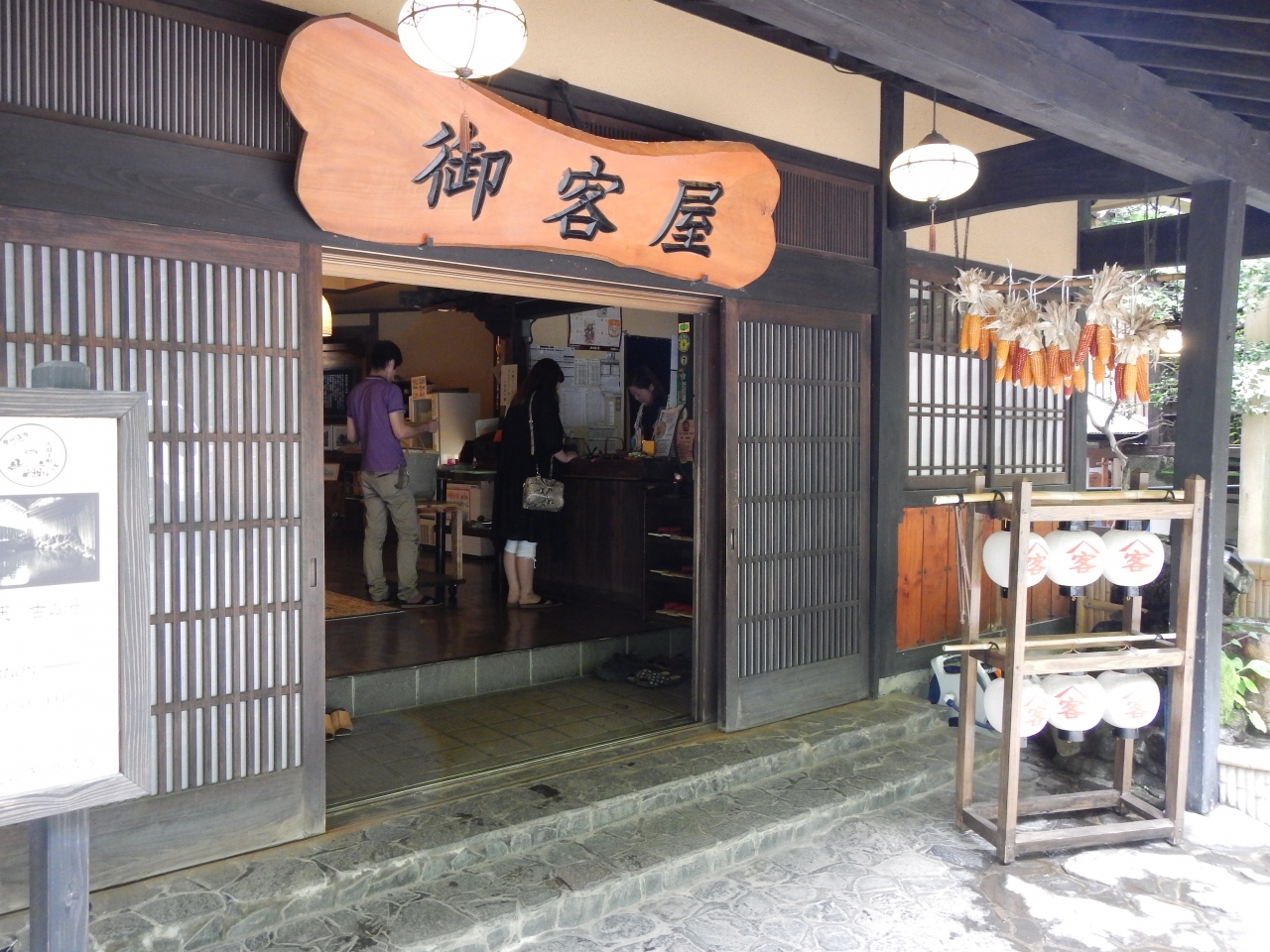 入口の吊して干してあるトウモロコシ、温泉玉子など入る前から雰囲気あります。2014年6月、入湯手形で利用しました。脱衣場は少し狭いです。お湯は黒川温泉では珍しく少し濁り湯でした。奧の1段あがった所にも露天風呂があり、そこには、打たせ湯が2つありました。土曜の午後でしたが、お客はひっきりなしでした。