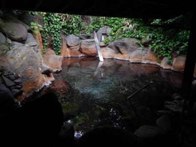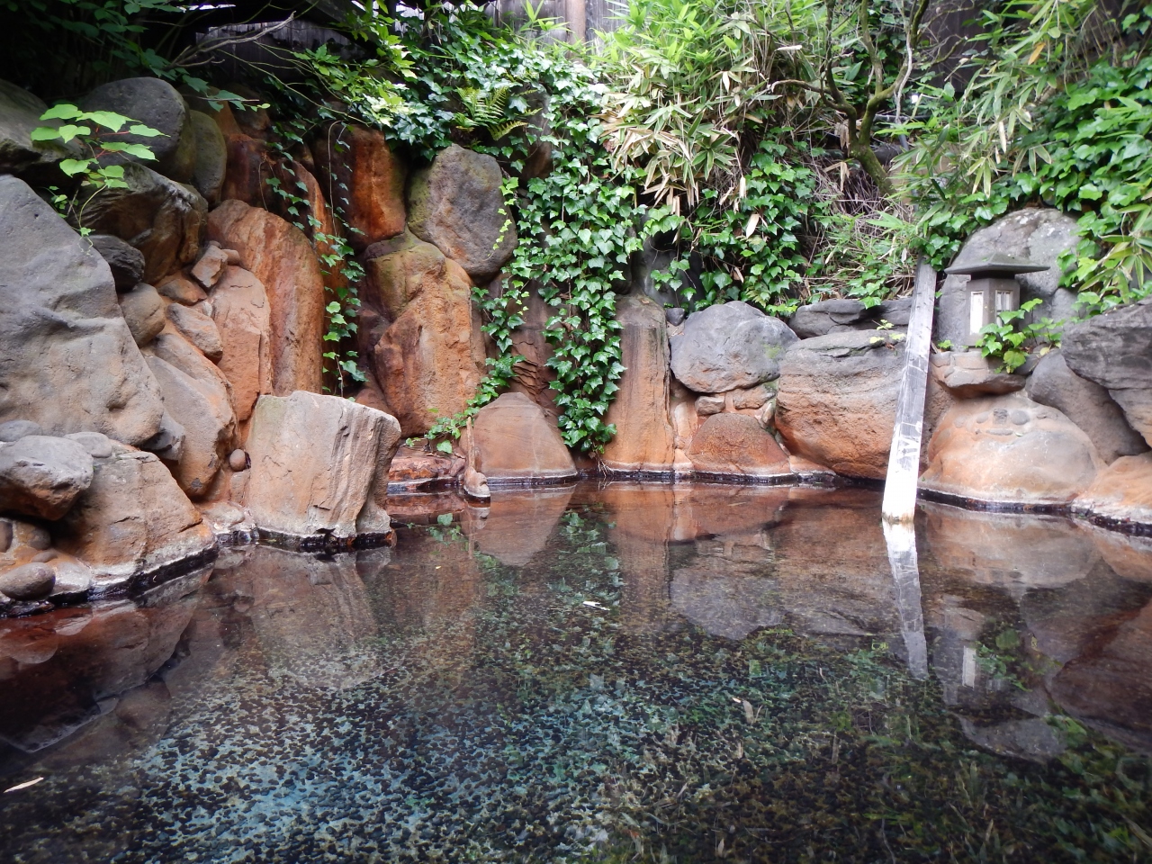 露天風呂 奧には打たせ湯が2つありました 2014年6月、入湯手形で利用しました。