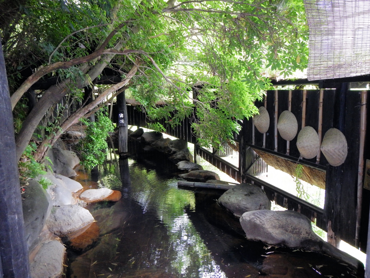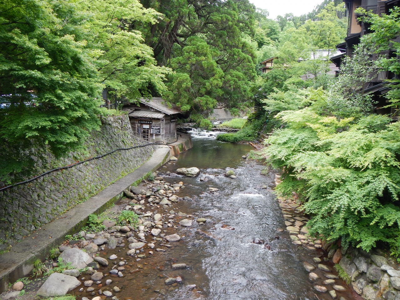 黒川温泉のメイン通りに面してあります。入口はちょっと奥まってますので、見落としやすいかも知れません。2014年6月、入湯手形で利用しました。露天風呂は川の対岸にありますので、橋を渡っていきます。川沿いの細長い露天風呂と、その奧に寝湯がありました。寝湯は水深が浅くて、寝ると身体半分がつからない状態でしたので、利用しませんでした。お湯は透明です。通りに面したところに顔湯(無料)があります。顔湯があるというだけで、利用しないでクチコミを書くのは、やめましょう。