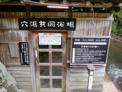 黒川温泉観光旅館協同組合の旅館では無いので、入湯手形では入れません。と言っても、共同浴場ですので、2014年6月入湯料100円です。場所がわかりにくいです。黒川温泉の川沿いの旅館街の通りの橋の上から見えます(写真)駐車場の横の階段を降りたところにあります。混浴、水着・バスタオル着用不可です。脱衣場も湯舟も男女共用です。注意しなくてはいけないのは、横の川沿いの通路からね中を覗けることです。