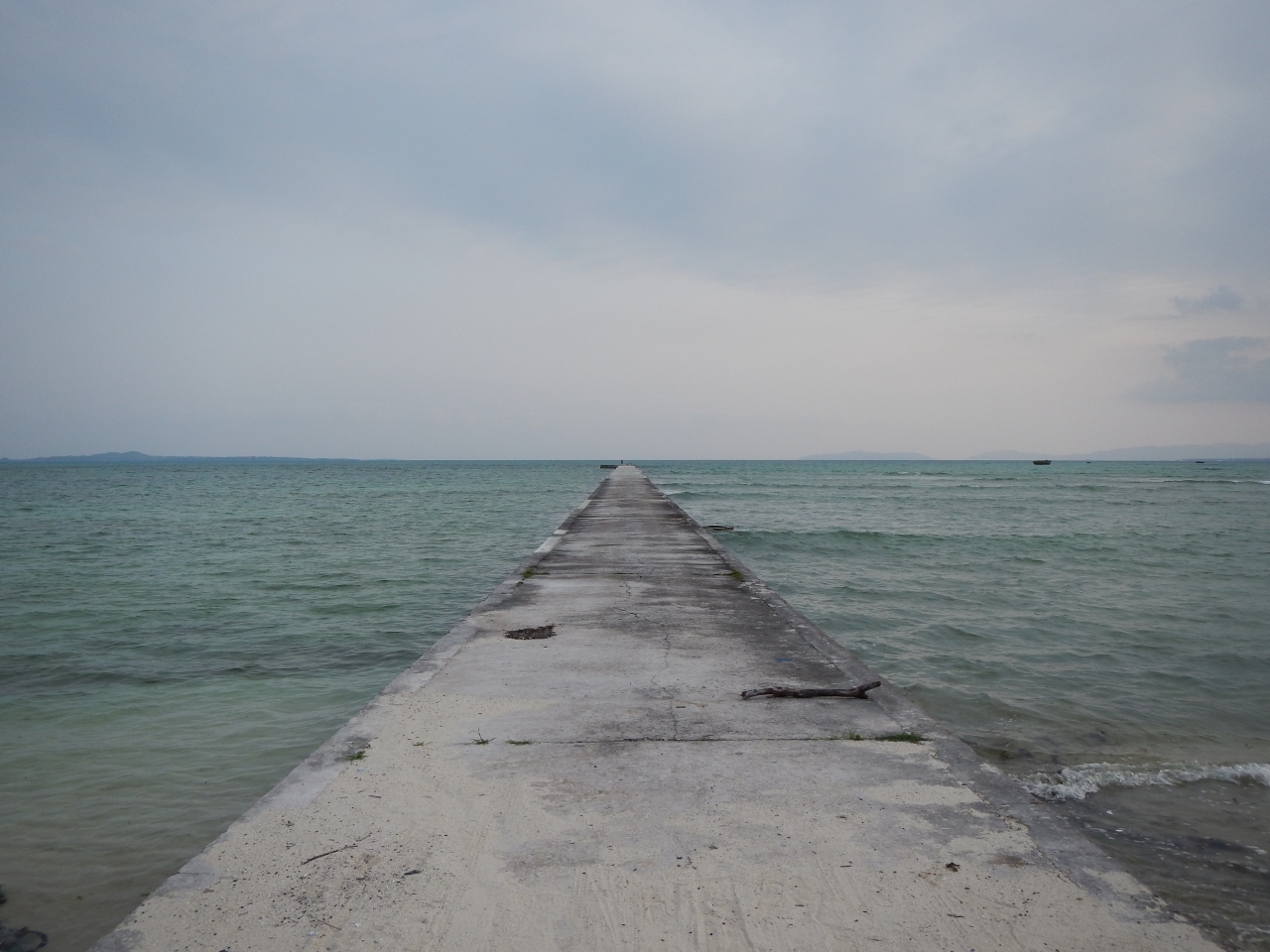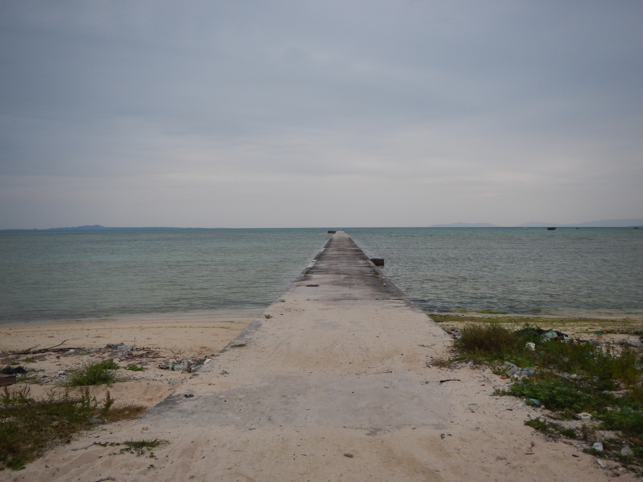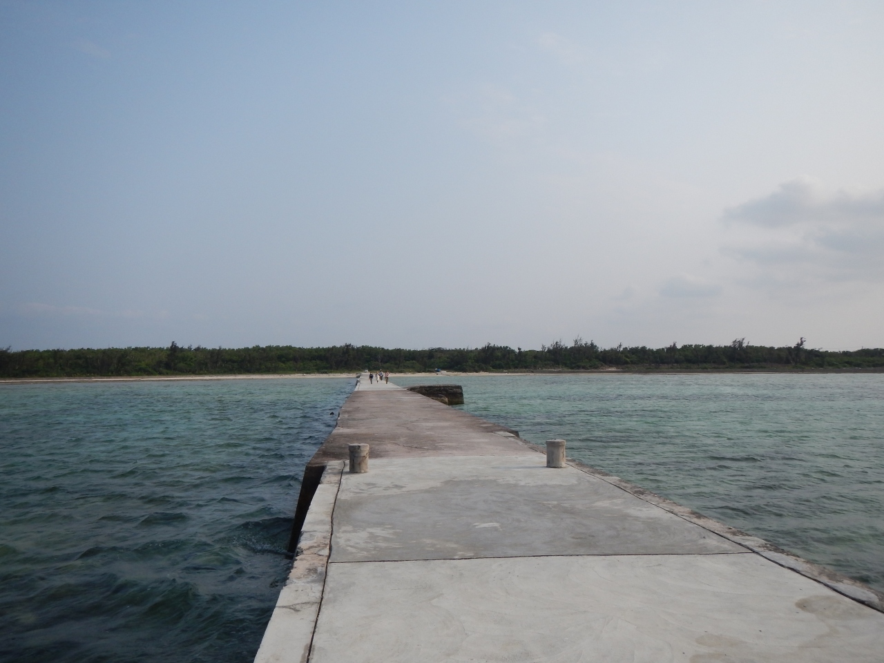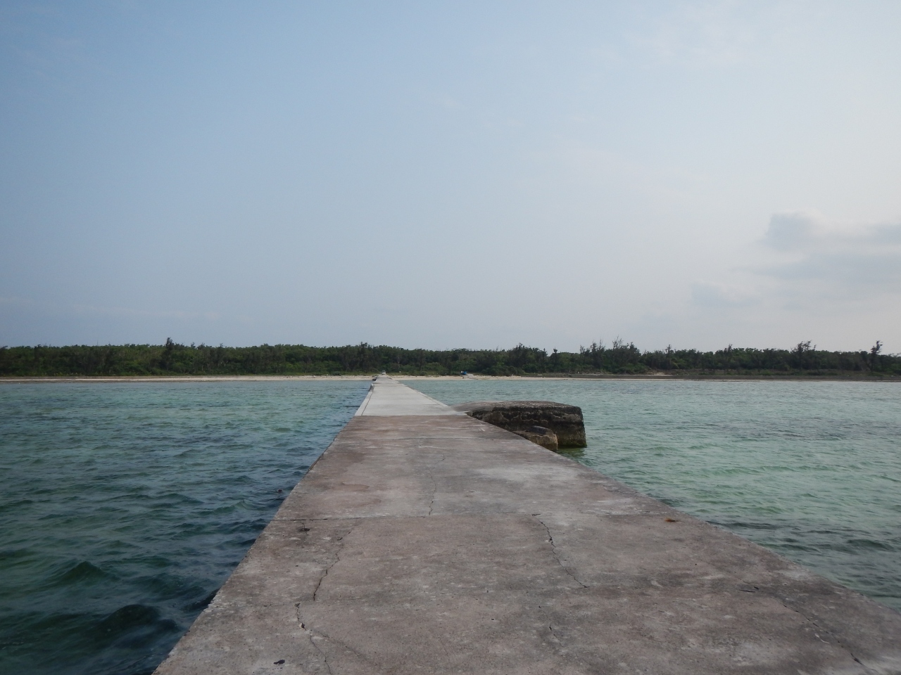 先端で釣りをしていたり、砂を取る車が真正面に停車していたりして、なかなか良い写真が撮れません。観光客に取っては迷惑ですが、困ったものです。桟橋の両側は、いつもゴミだらけですが、これもなんとかならないでしょうか。写真を撮るのは、満潮の晴れた日が良いです。去年の8月には、完全に修復されていて、先端まで行けるようになっています。