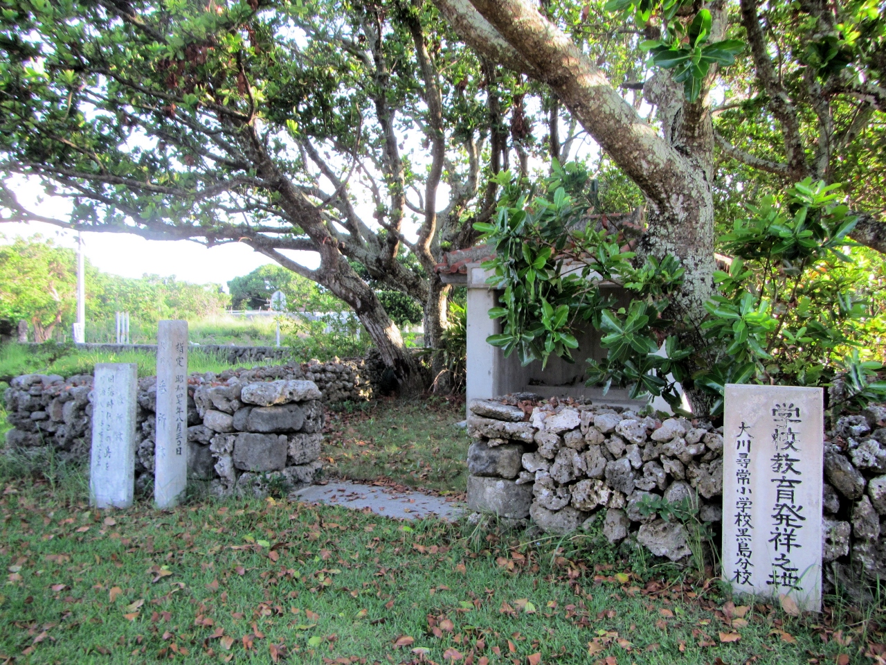 黒島港から真っ直ぐの一本路の突き当たり、今はビジターセンターになっているところに番所跡があります。江戸時代の役所跡です。昭和47年8月に史跡として指定されました。石垣と社が残ってますが、この社は当時の物では無いでしょう。また、同じ場所に学校教育発祥の地の碑が立っています。学校教育発祥の地と言っても、日本の学校教育では無く、黒島での学校教育発祥の地=分教所跡です。
