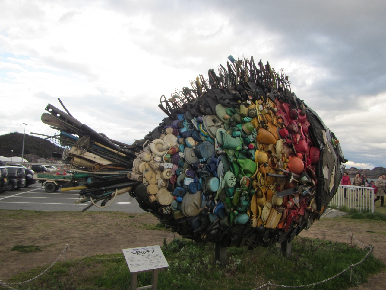 ベネッセのアートで有名な島ですが、瀬戸内の他の島と同じく、すこし高い所に上がれば、瀬戸内の美しい風景が楽しめます。瀬戸内国際芸術祭が終わった今も(2014年3月)島は、多くの観光客が訪れて活性化していますが、観光客が減ってしまえば、大手資本は、ゴミや産廃だけを残して、さっと手を引くのは、他の例も有り、目に見えてますから、心配です。この島の北側は、古くからの精錬所と、隣の豊島の産廃を処理する施設です。その周辺の山は、排ガスにより、木の生えないはげ山がつづいています(今では排ガスもきちっと処理されているのでしょうが)