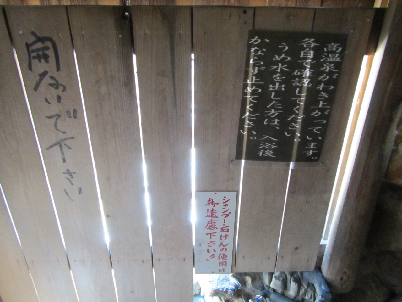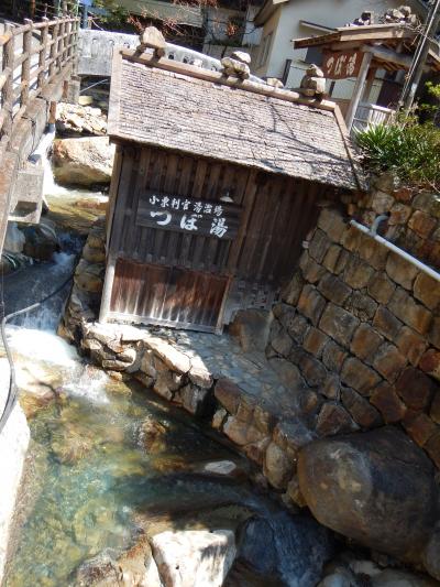 3月、2回目行ってきました。前回(2週間前)と同じく、つぼ湯・公衆浴場(くすり湯)・湯筒を堪能しました。今回は、公衆浴場の真向かいにある旅館あづまやの日帰り入浴にも入りました。公衆浴場の手前では、温泉くみとり場もあり温泉水を持ち帰ることもできます。(10リットル100円)2014年3月の値段です。山あいの情緒のある小さな温泉街です。歓楽街とかは、ありません。