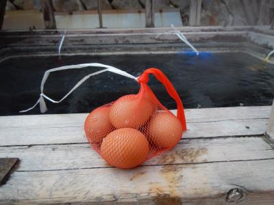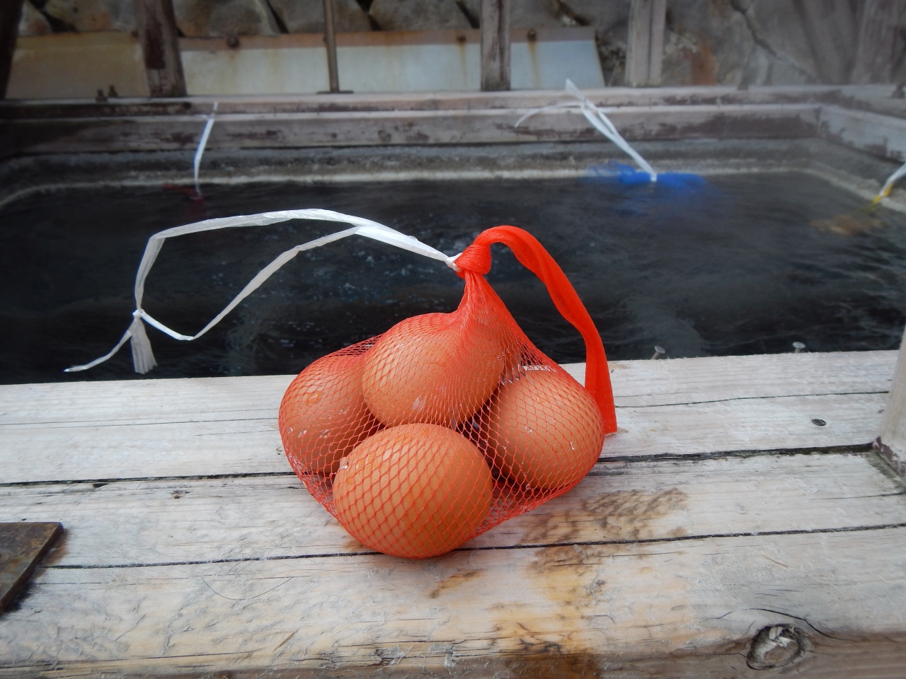 3月初めに続いて、また行ってきました。3月中旬の土曜日の12時前、待ち時間10分くらいで入ることができました。ただ、私が出た後、次々と客が来て、すぐに3人待ち(1時間半待ち)くらいになりました。湯の峰温泉に着けば、すぐに公衆浴場の受付に行って、待ち時間を確認するのがよいでしょう。30分待ちくらいでしたら、前の河原にある湯筒でゆで卵を作っていれば、時間がつぶせます。