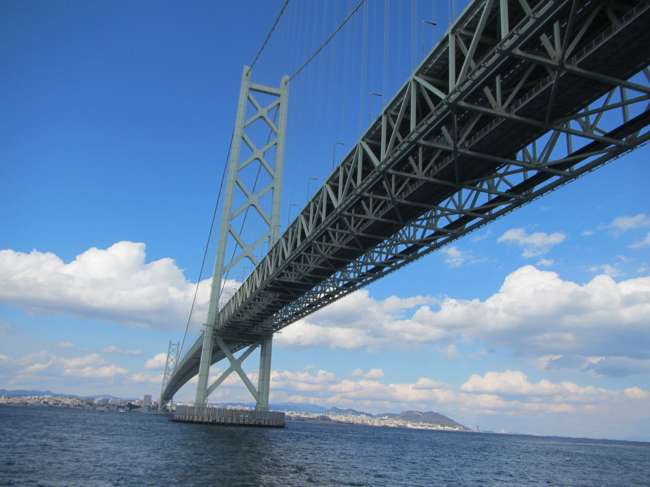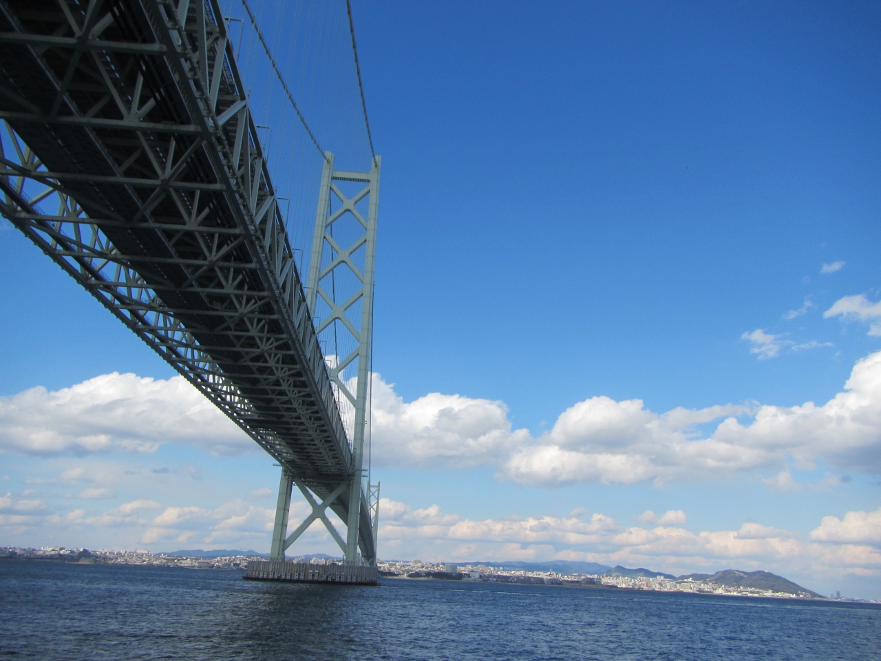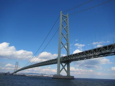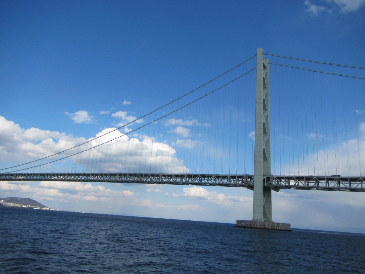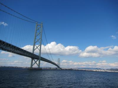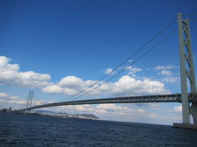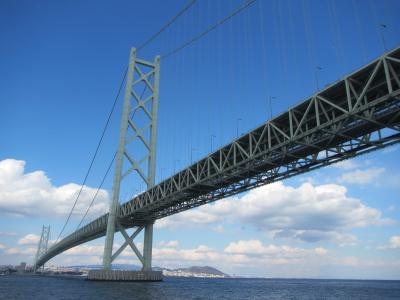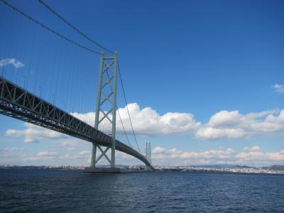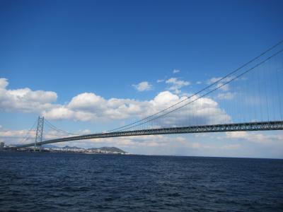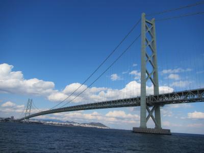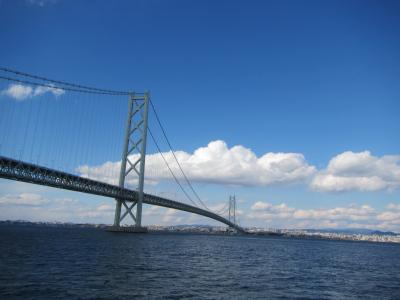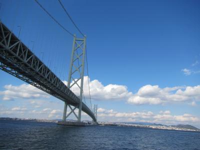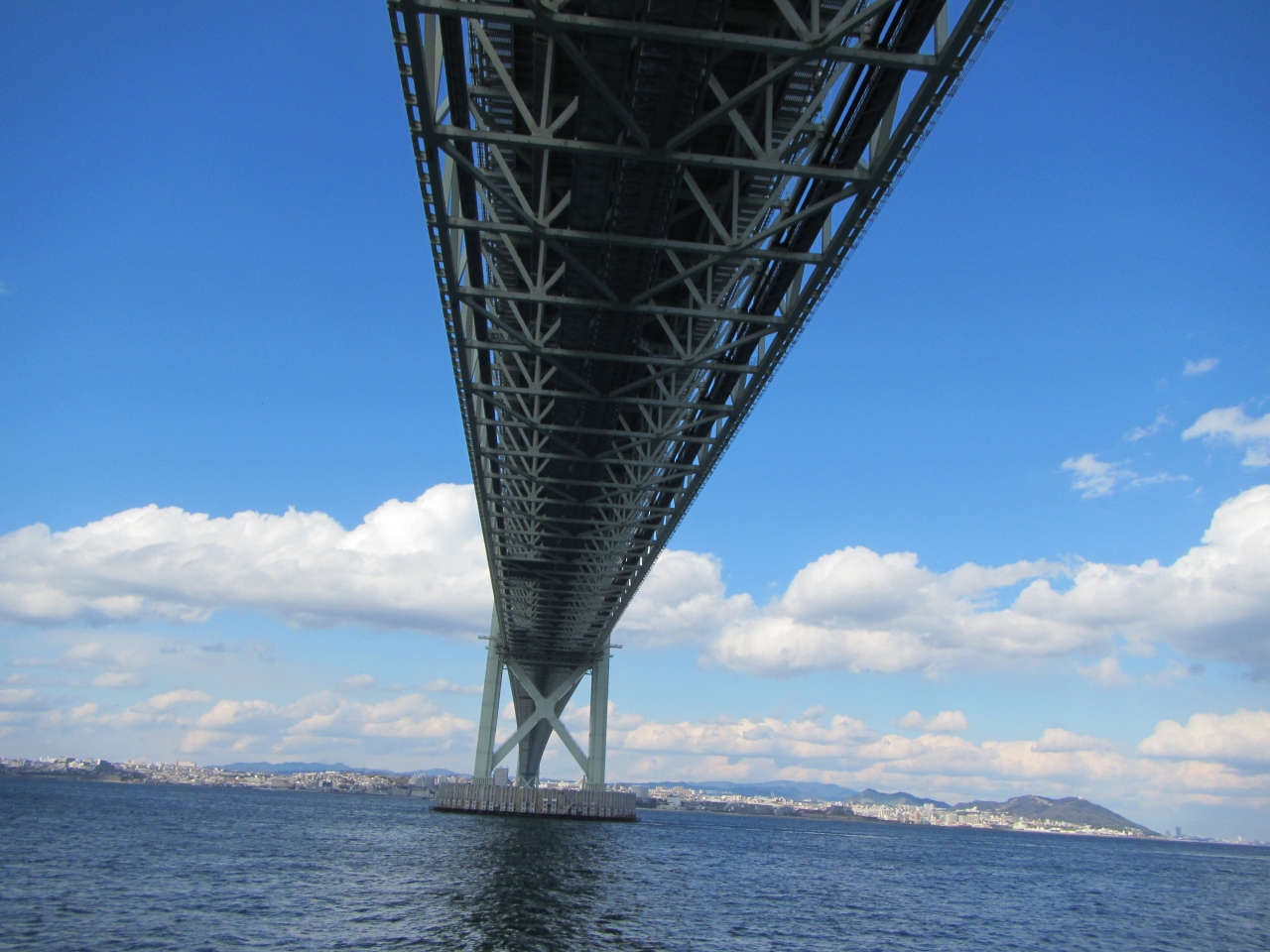 遠くの陸上から見ても、この橋の迫力は感じられません。また、渡っても意味ありません。ど迫力で見たいなら、海の上から見るしかないです。真っ昼間に海からみるには、神戸~高松間のジャンボフェリーか、明石~岩屋間のジェノバラインです。ど迫力の写真は、ジェノバラインでくぐったときに撮りました。2014年4月から片道500円に値上げされてました。
