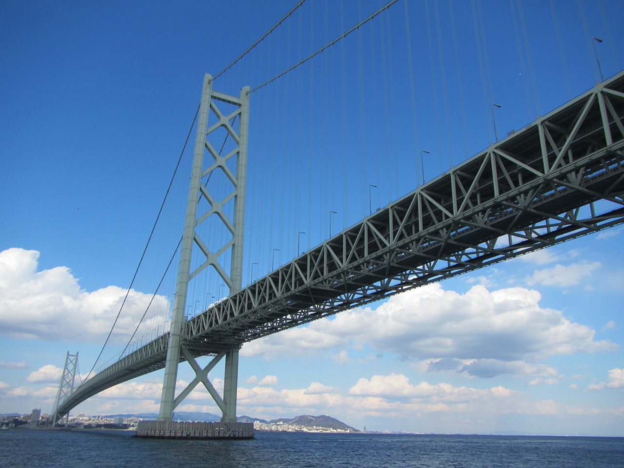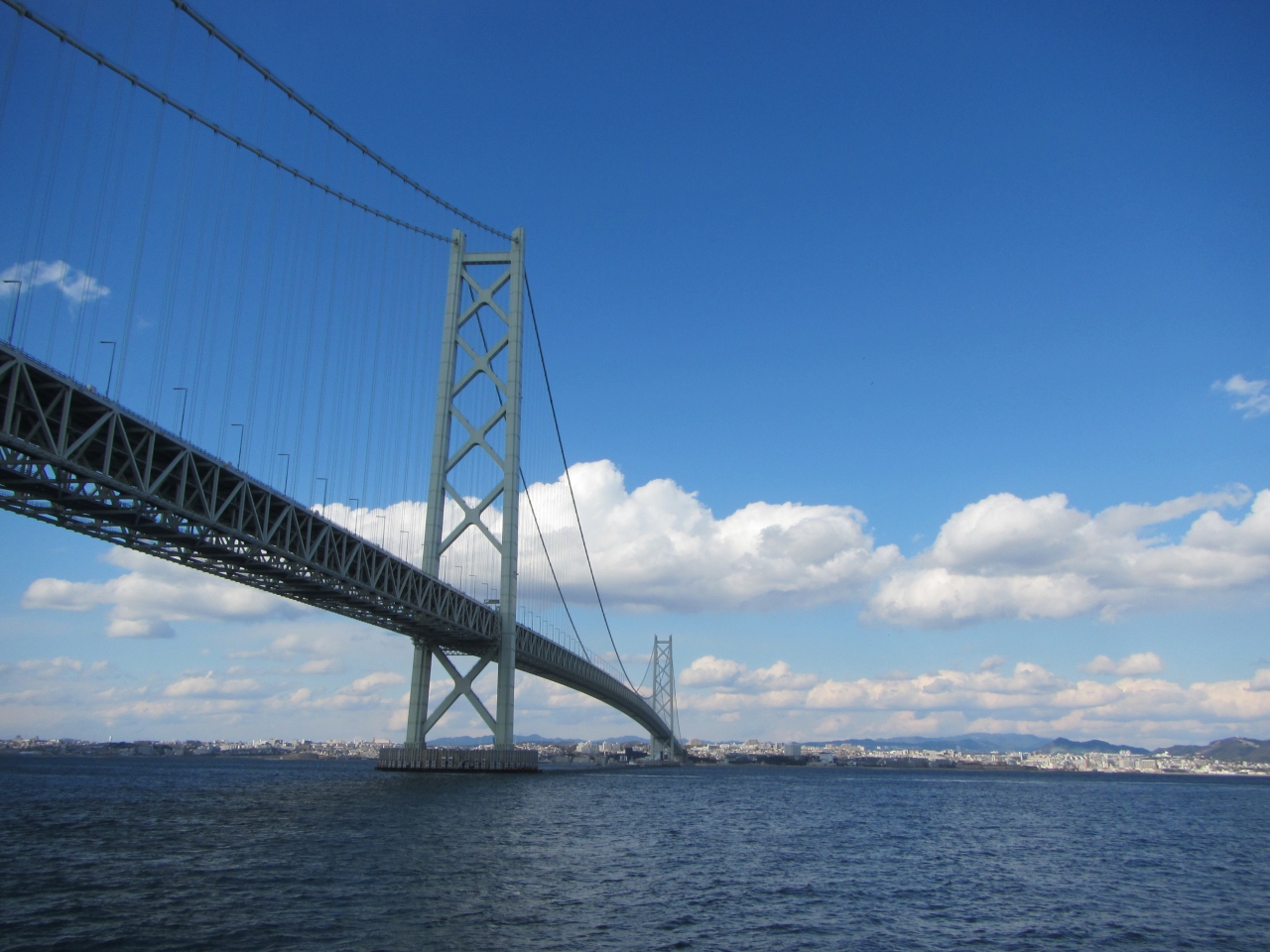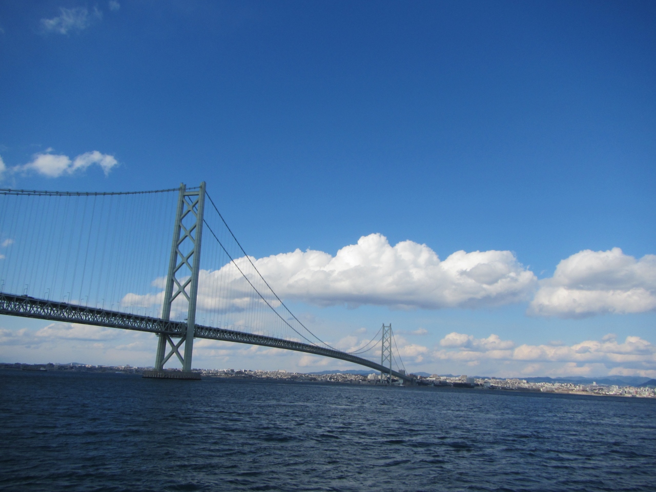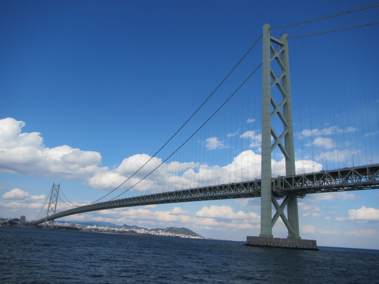 遠くの陸上から見ても、この橋の迫力は感じられません。また、渡っても意味ありません。ど迫力で見たいなら、海の上から見るしかないです。真っ昼間に海からみるには、神戸~高松間のジャンボフェリーか、明石~岩屋間のジェノバラインです。ど迫力の写真は、ジェノバラインでくぐったときに撮りました。2014年4月から片道500円に値上げされてました。