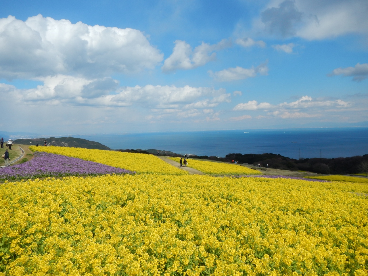 山頂にあります 天候の急変に注意 2014年4月 一面の菜の花満開