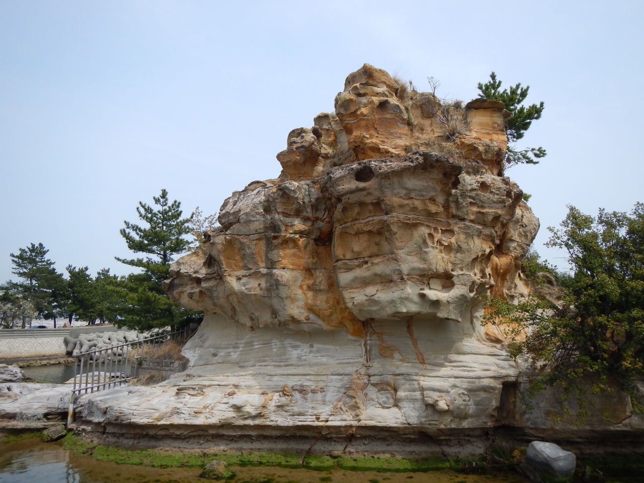 和歌に詠まれた絵島 岩屋港での時間待ちに寄りました 不思議な岩模様が絵になる島です