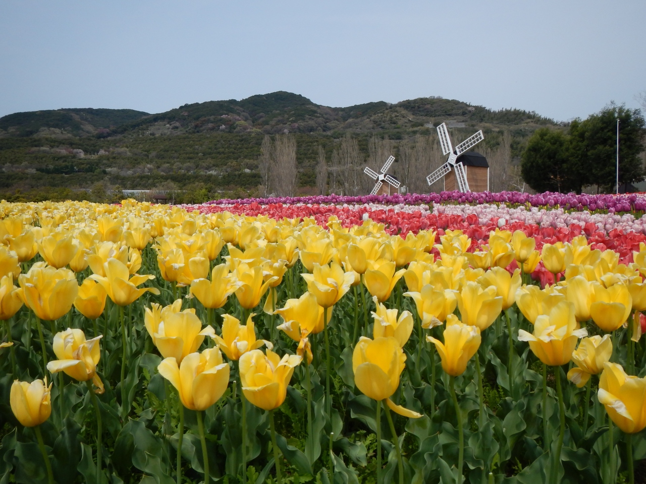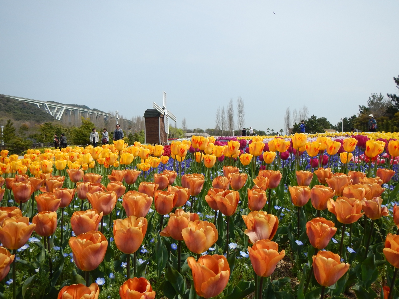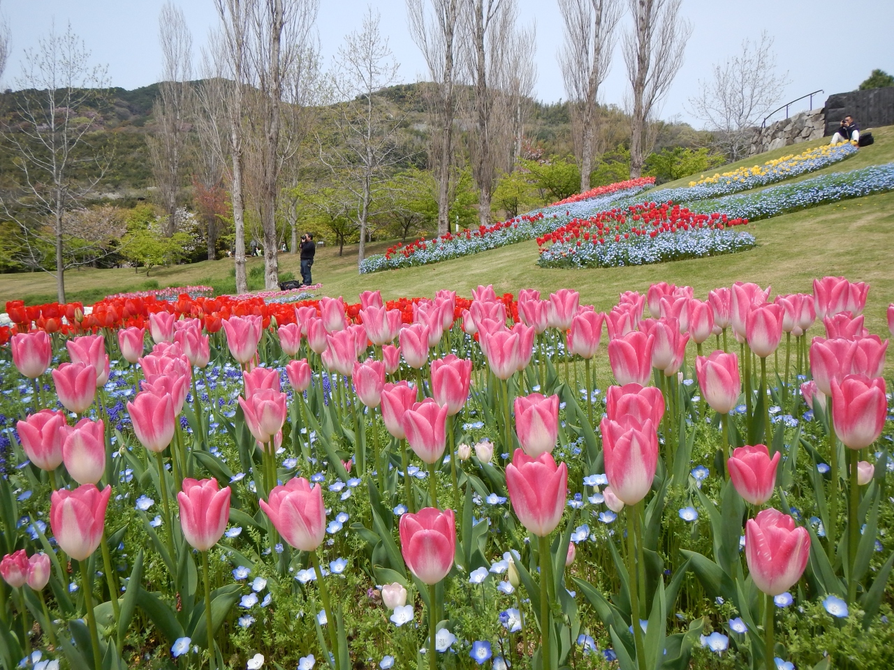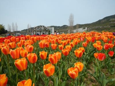2014年4月12日チューリップが満開でした。9時過ぎに到着しました。開演時間は9時半からでしたが、なぜか既に開演していました。花のシーズンは三ノ宮・高速舞子からのバスが混みます。私は速いバスでしたので、積み残しはありませんでしたが、要注意です。新神戸・三宮からはJR西日本と本四海峡バスだけですが、高速舞子からは、淡路交通バスが出ています。