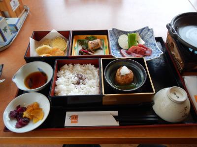 亀の井バス 定期観光バスメルヘンコースで寄りました。昼食と日帰り入浴です。昼食(写真参照)は美味しかったです。温泉はにごり湯です。大浴場は広いです。循環です。露天風呂は、広くはありませんが、石楠花が咲いて、きれいですし、晴れていて気持ち良かったです。