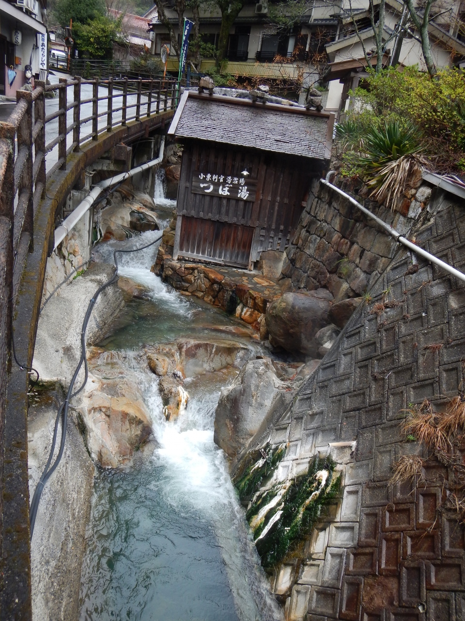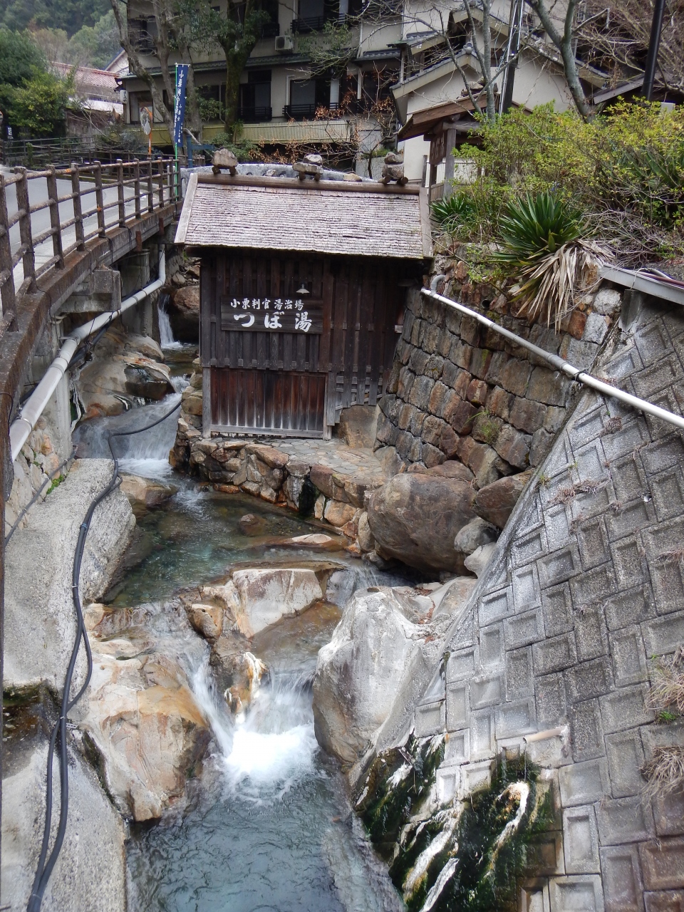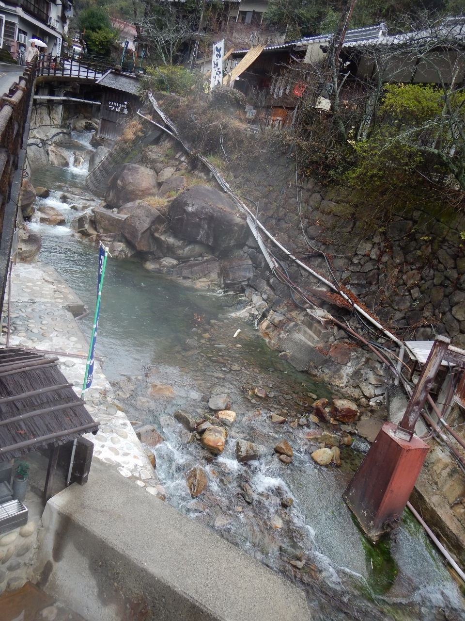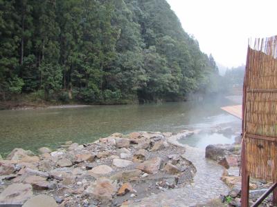 河原の木造の小屋の中が小さな温泉になっています。石鹸・シャンプー等の使用は出来ません。30分750円で1組貸し切りです。近くの湯の峰温泉公衆浴場で料金を払って、番号札をもらいます。先着順です。予約は出来ません。3月1日に来たときは待ち時間があり、入ることはできませんでした。それで次の日、3月2日の午前中に来たときは、ちょうど前の人が出たところで待ち時間無しで入ることができました。深さは80センチくらい、底は砂利で、底から温泉が湧いてくるという感じです。源泉掛け流しですが、熱くなってしまうと、当然水を足さないとは入れません。ちょっと熱かったので少し水を足しました。中に時計があり、30分たてば自主的に出て、番号札を受付に返すという仕組みです。