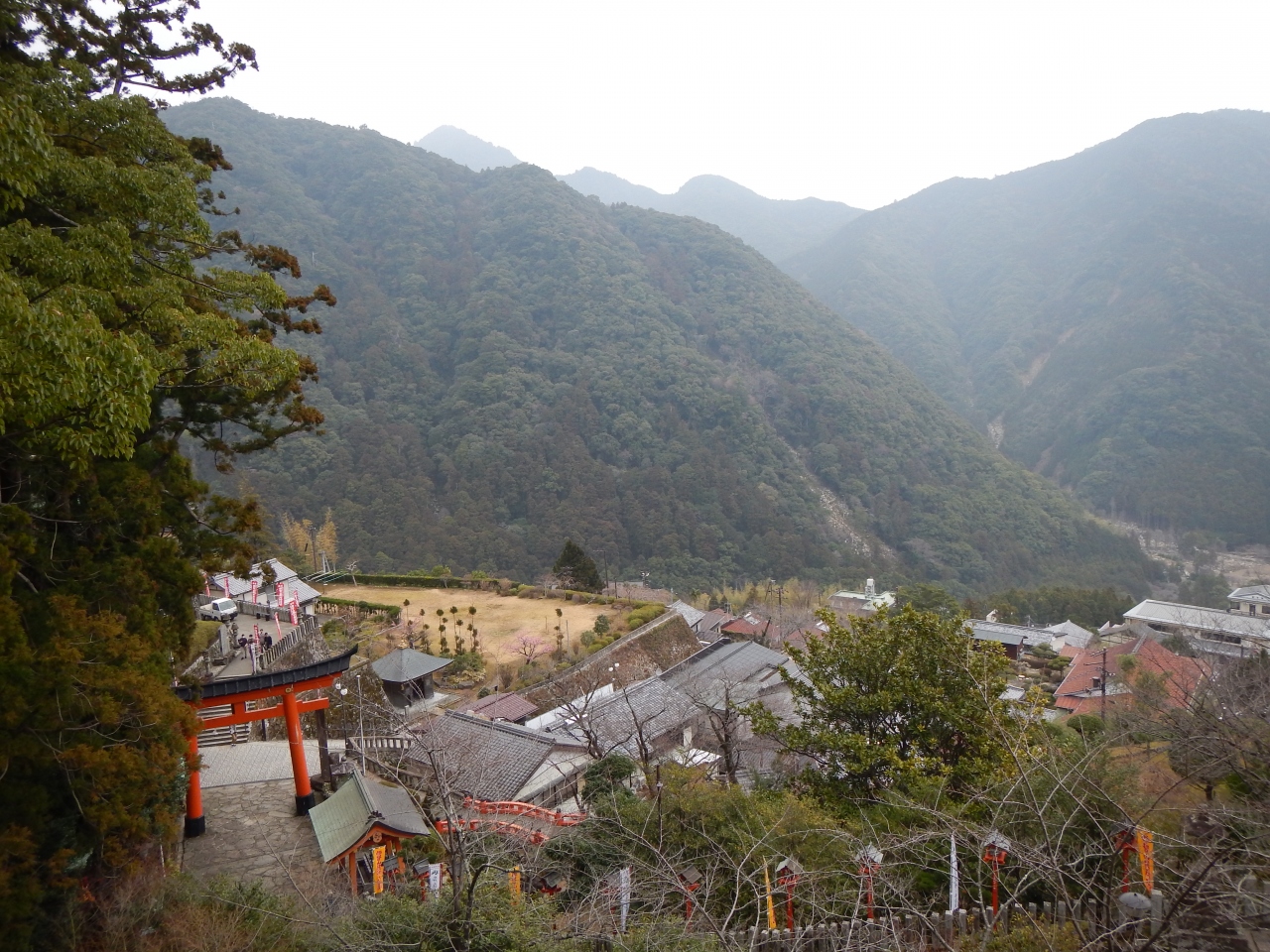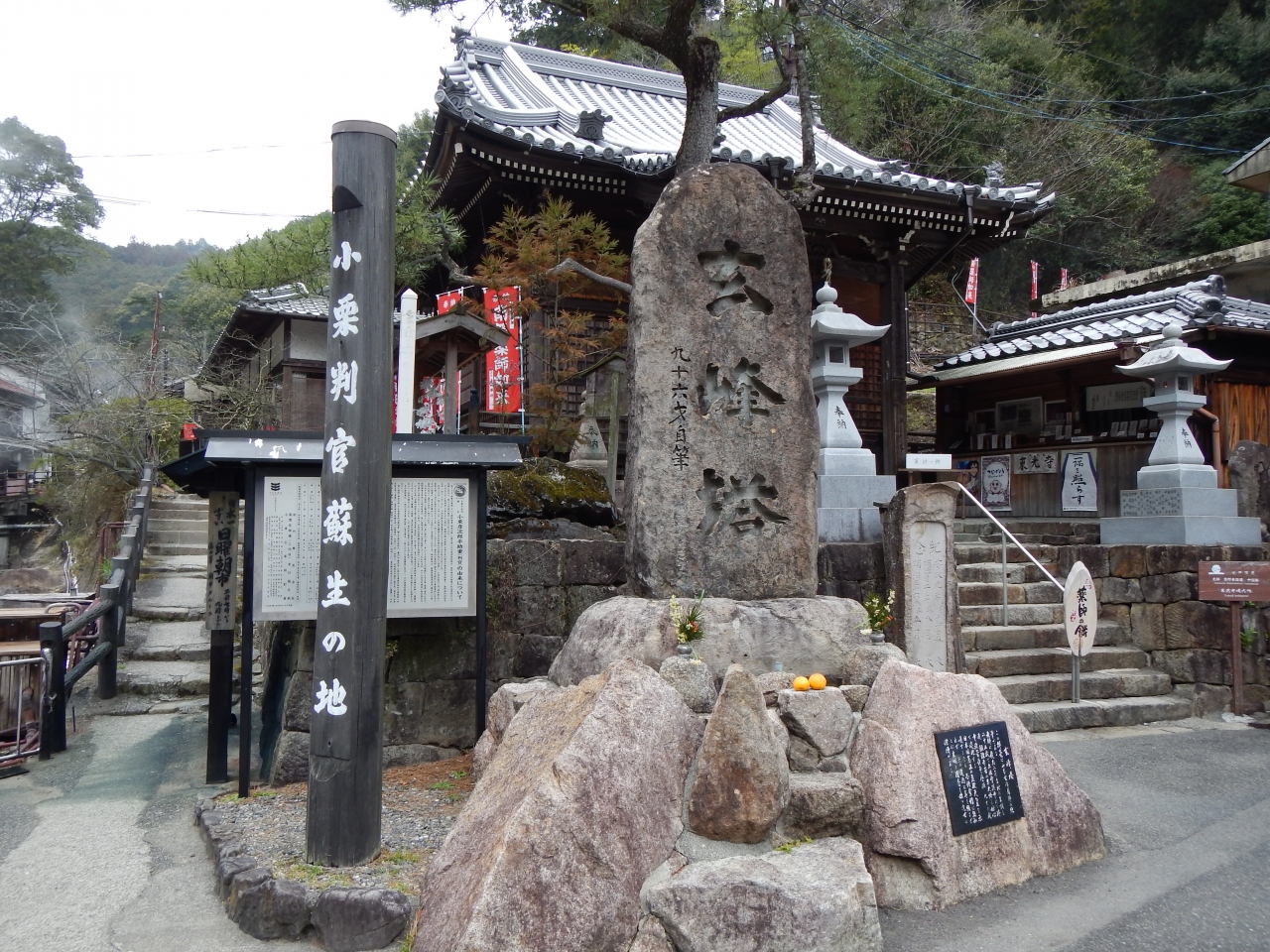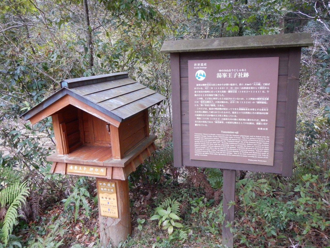 湯の峰温泉バス停から熊野古道大日越方向に歩いて5分です。熊野古道の地図を持っていれば問題ないでしょうが、地図が無いと解りにくいです。バス道から橋を渡って、つぼ湯の横を登って行くとあります。高浜虚子の句碑と朱の小さな社があるだけです。ここから温泉街が見下ろせます。