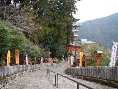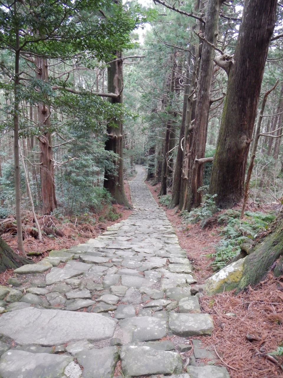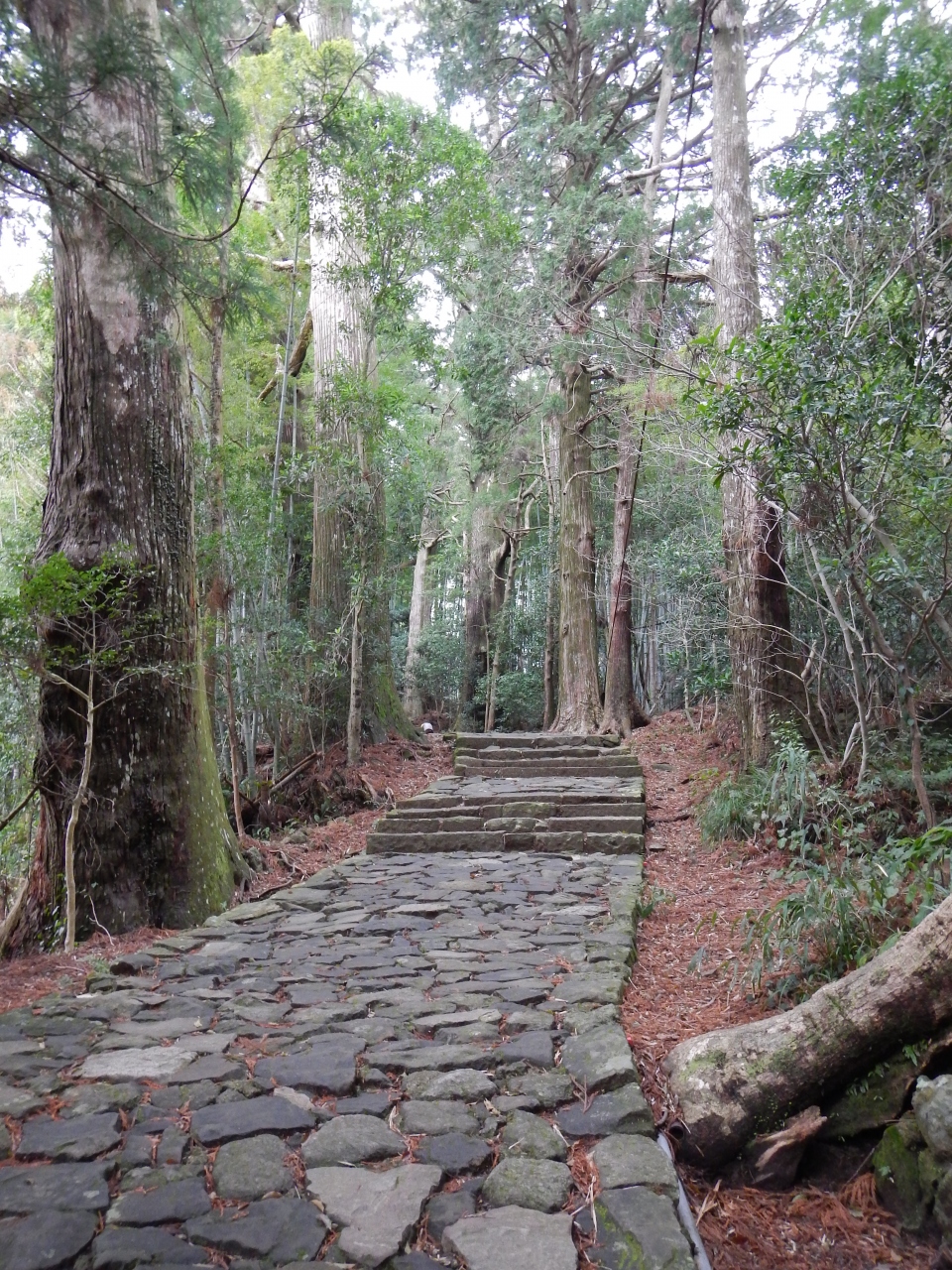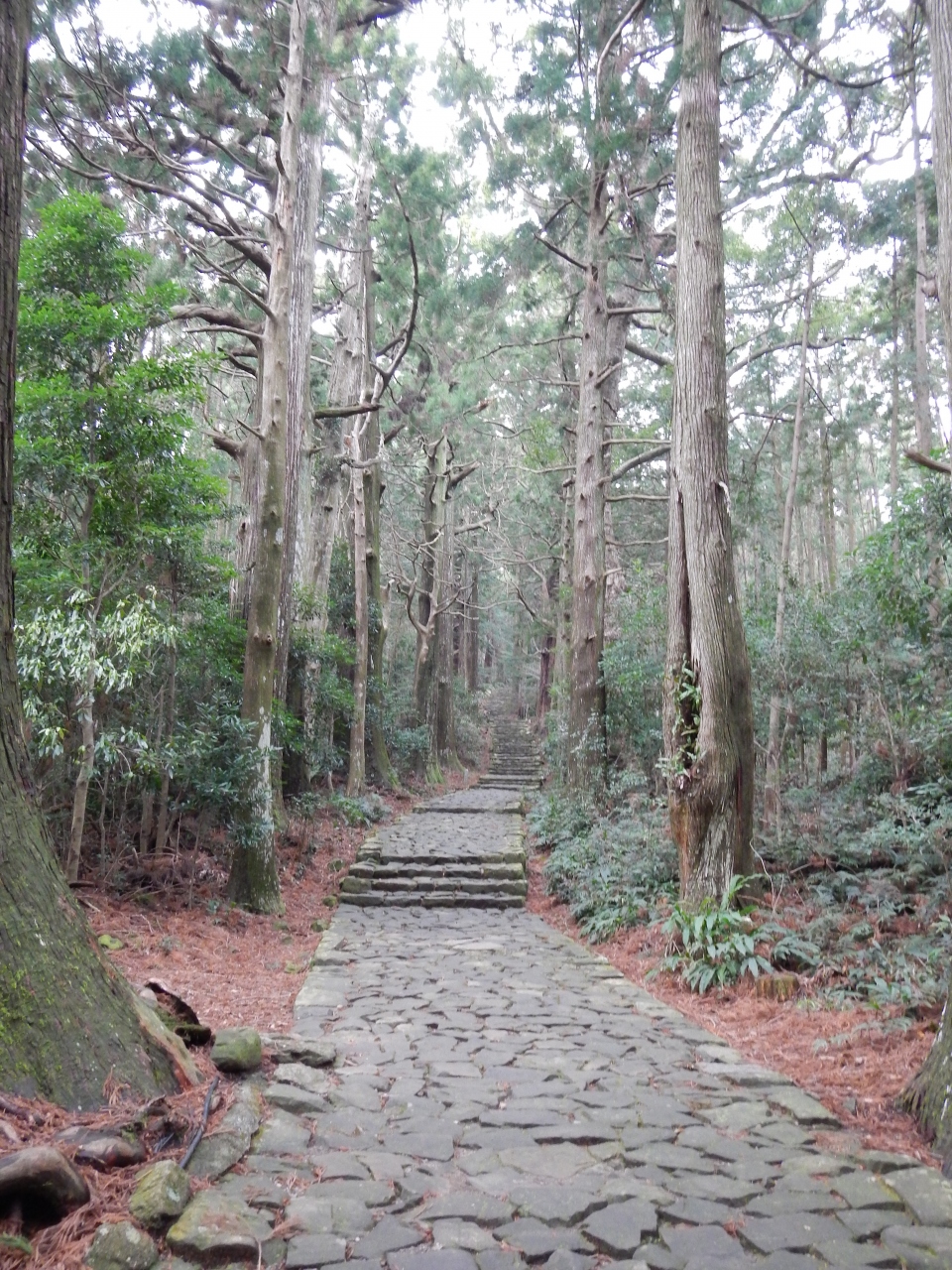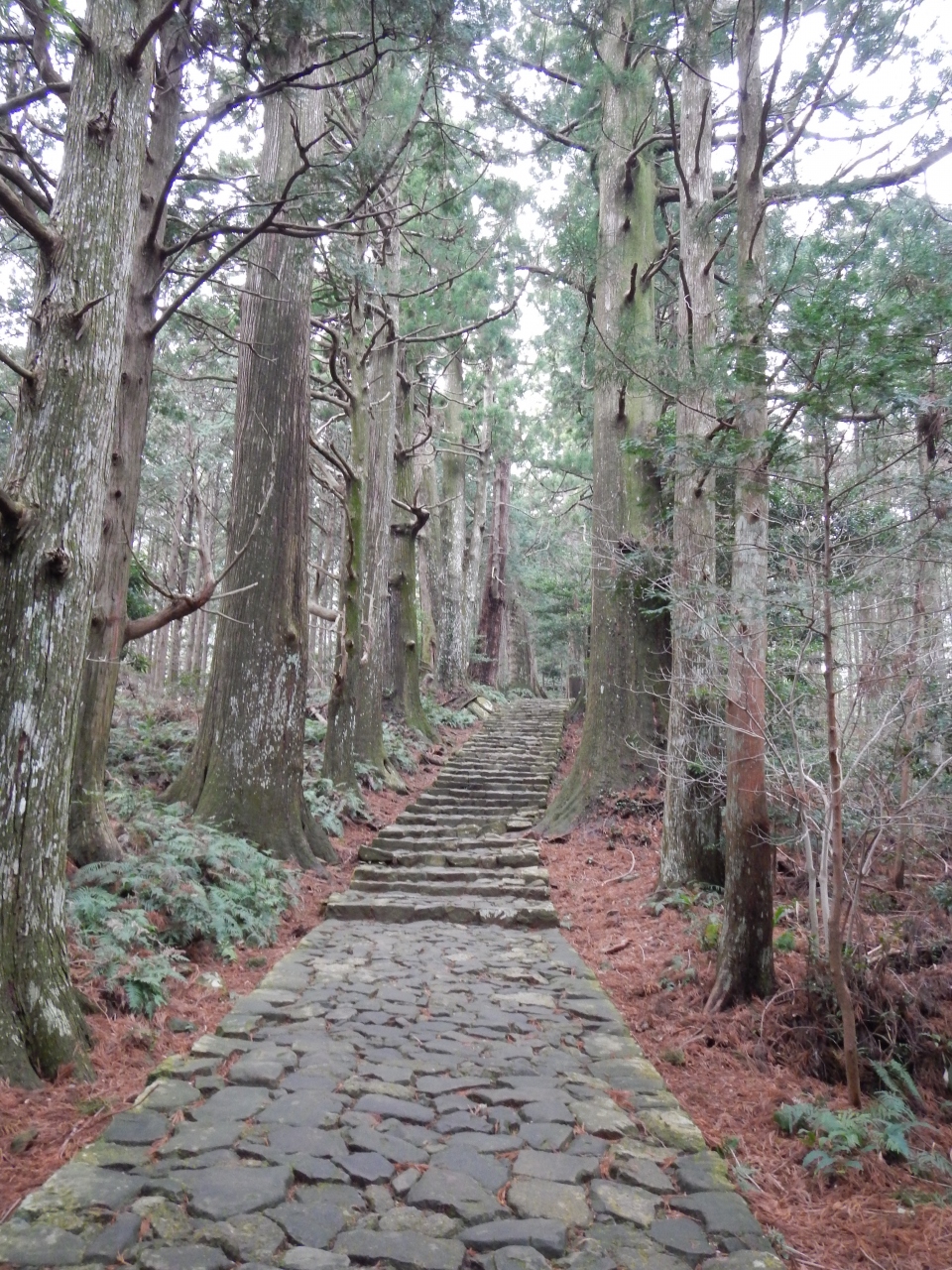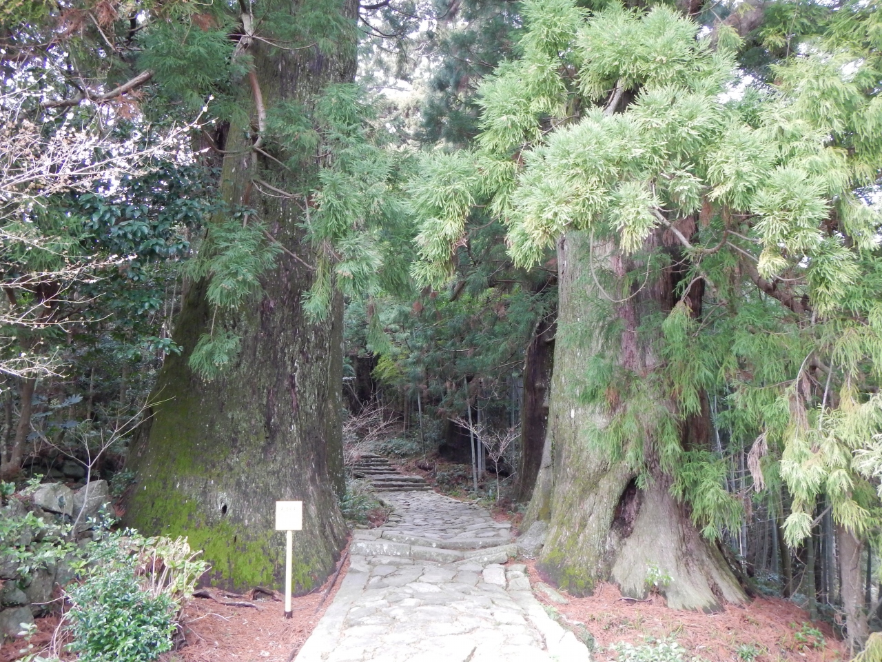 石段が続きます。足腰に自信の無い方は、杖(無料)を借りましょう