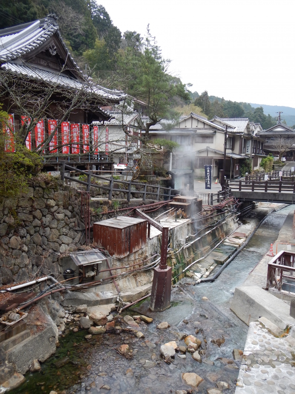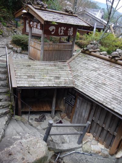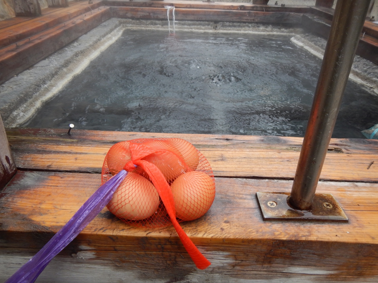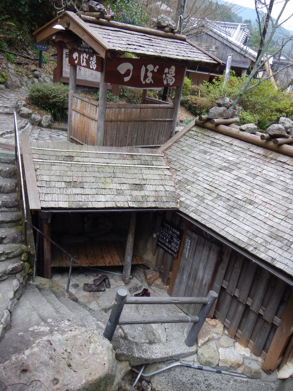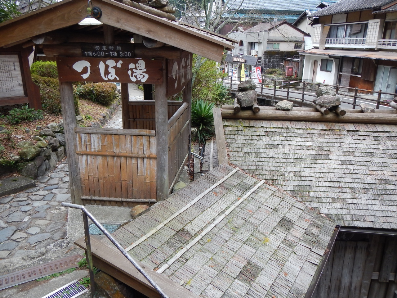 狭い川の両岸に木造の旅館が建ち並んでいます。湯の峰温泉バス停の前に公衆浴場があります。普通の公衆浴場は250円、源泉掛け流しのくすり湯は380円です。つぼ湯もありますが、つぼ湯の項目で書いてますのでそれを参考にしてください。くすり湯は少し濁っていて、効くっていう感じでした。普通の公衆浴場は入っていません。湯筒は河原の囲いの中に温泉が湧いていて、玉子を買って、そこで茹でると温泉玉子が出来るという物です。利用料は無料ですが、やはり玉子は、持ってくるのではなく、ここの売店で買いましょう。湯の峰温泉は、熊野古道大日越・赤木越の中継地点でもあります。バス停から50mほどあがった川の両側が熊野古道の起点です(解りにくいですが案内表示有り)