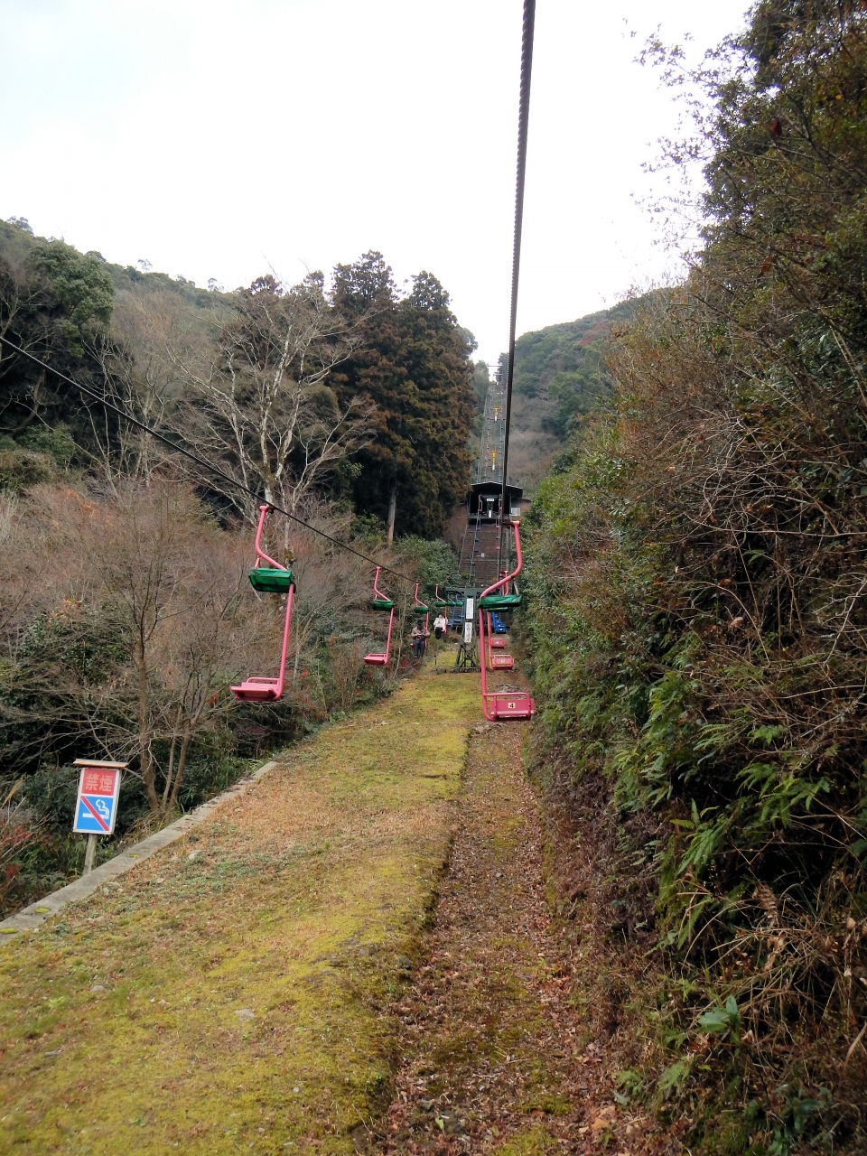 羅漢寺に行くために乗りました。途中で一旦降りて、また、上に続いているので、一瞬迷いました。羅漢寺に行くには途中下車です。途中下車してまた乗ると山頂展望台まで行ってしまいます。当たり前ですが、降りるときは景色がよいです。誘導員の方がおられるので、乗り降りも安心です。