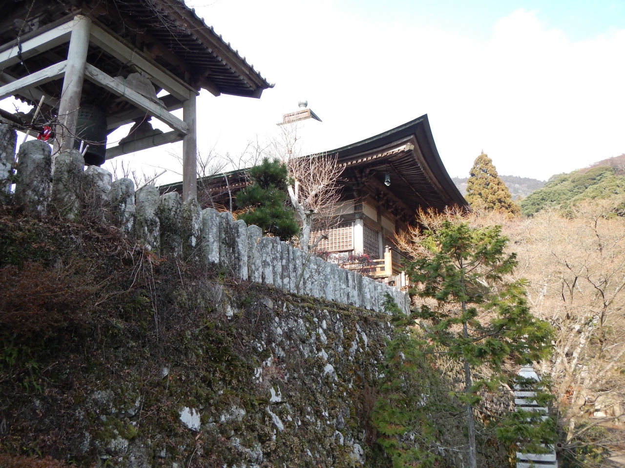 2014年1月石段の階段の横に手摺が出来ていました