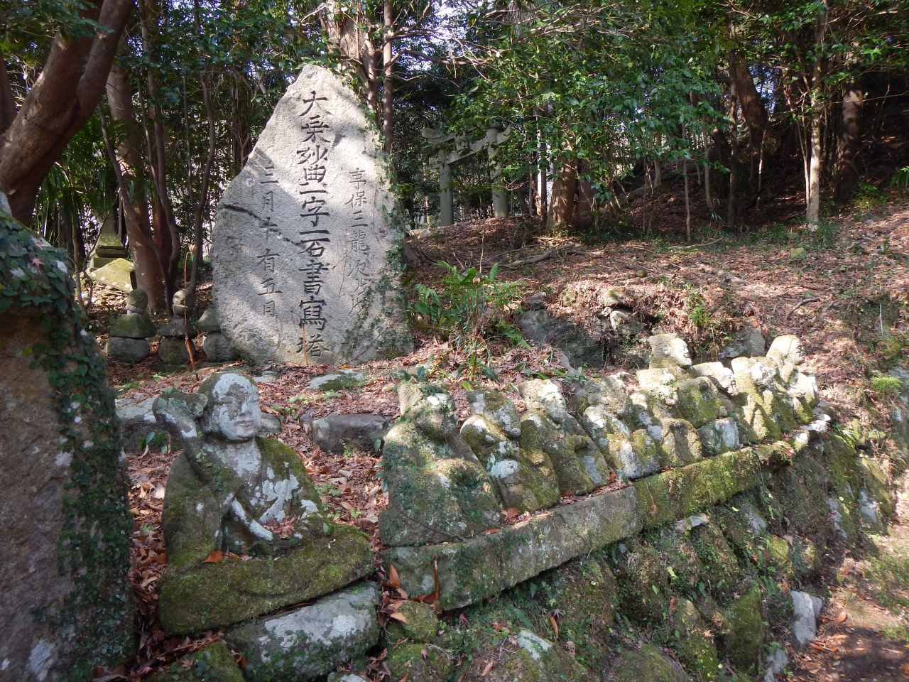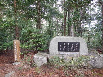 牛馬童子口のバス停から熊野古道に入り、坂道を登って少し行くと、道が分かれ、牛馬童子への標識があります。牛馬童子は想像よりずっと小さかったです。古道をひたすら歩いていると牛馬童子への分岐を見落とすかも知れません。また、ここには牛馬童子以外の石碑もありました。