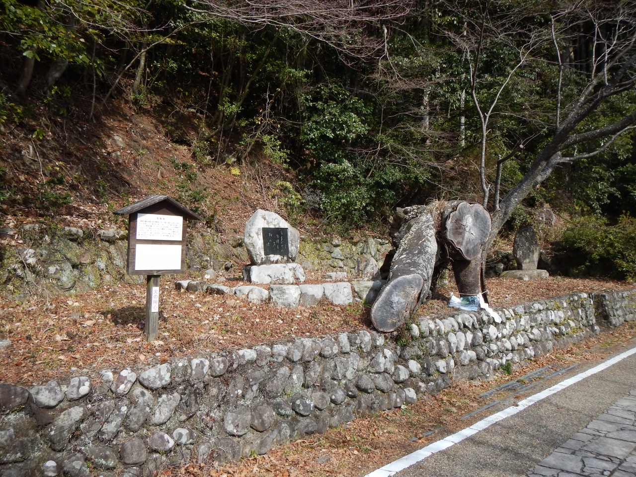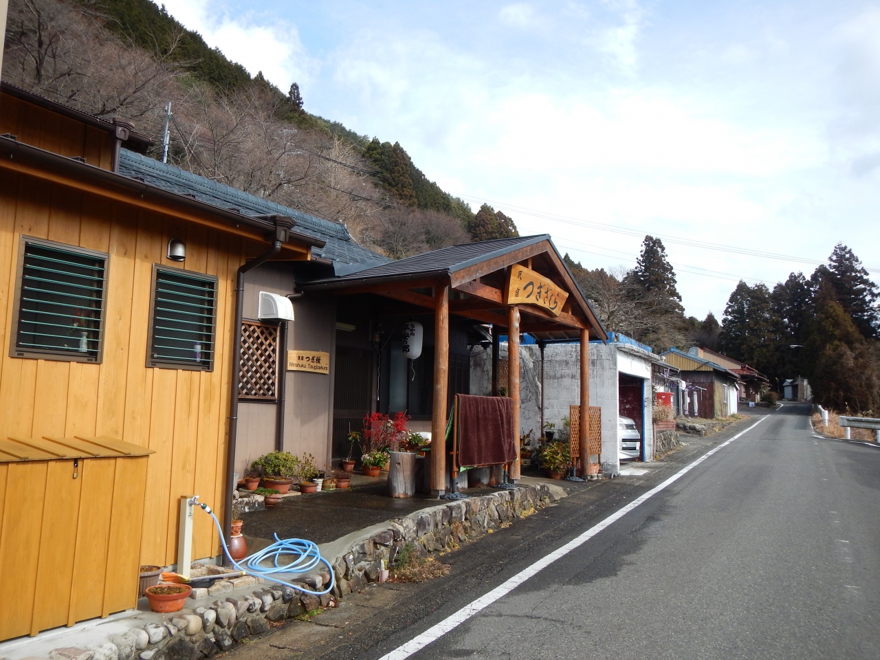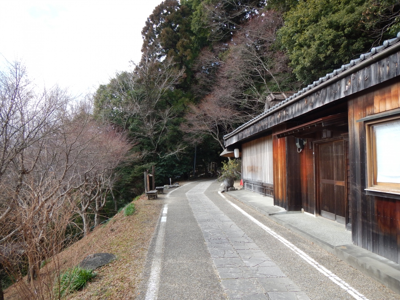 この当たりの道は車も通れる舗装道路です。とがの木茶屋があるのですが、私が行った1月の土曜日の11時頃は営業していないみたいでした。野中の清水がある旧国道沿いには民宿もありました。野中の清水の水を実際に飲んでみましたが水温が冷えてなかったせいか、おいしい天然の水という感じはありませんでした。