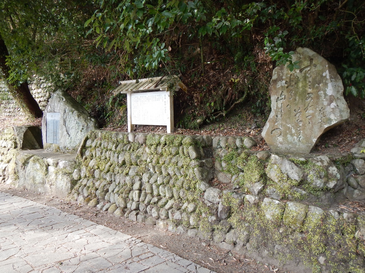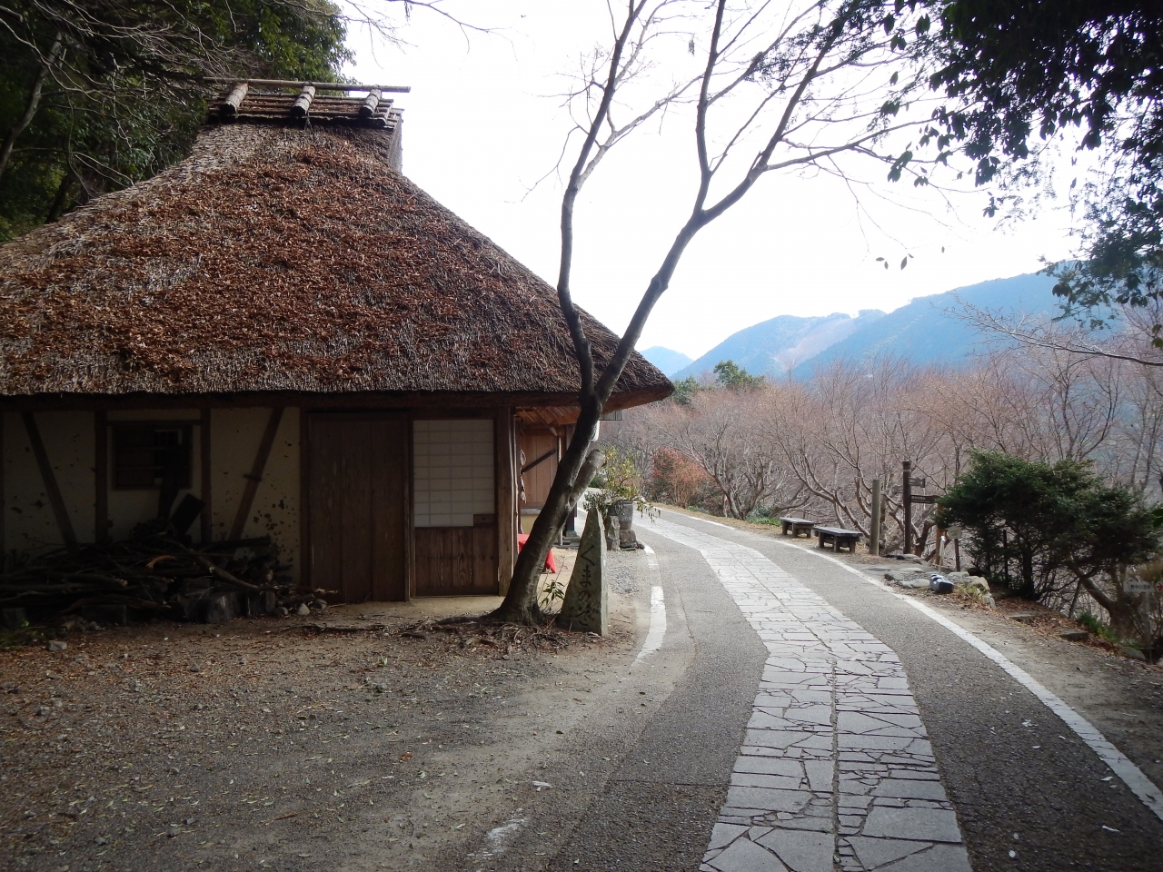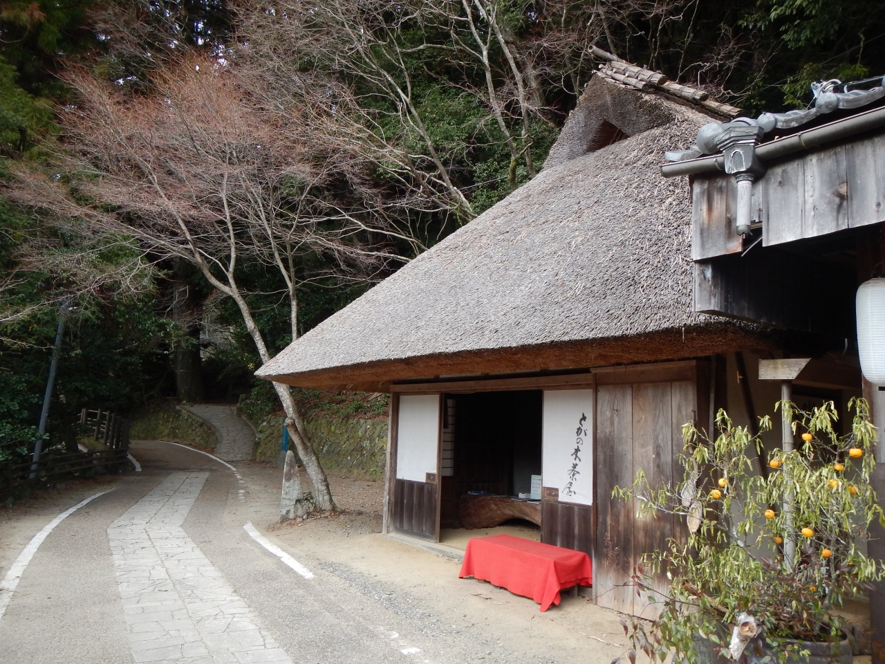 この当たりの道は車も通れる舗装道路です。とがの木茶屋があるのですが、私が行った1月の土曜日の11時頃は営業していないみたいでした。野中の清水がある旧国道沿いには民宿もありました。野中の清水の水を実際に飲んでみましたが水温が冷えてなかったせいか、おいしい天然の水という感じはありませんでした。